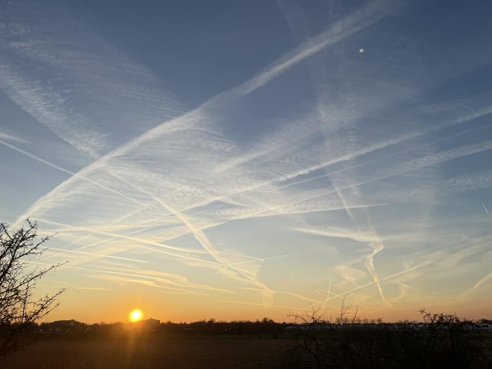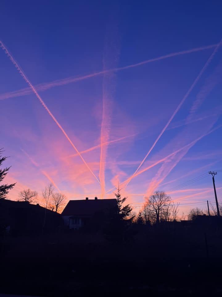 3 marca mieliśmy nad Słubicami zjawiskowy zachód słońca! Niebo rozświetliło się setkami pomarańczowo-czerwonych odcieni, a wyjątkowości temu zjawisku dodały smugi kondensacyjne zostawione przez lecące samoloty, które utworzyły efektowne wzory.