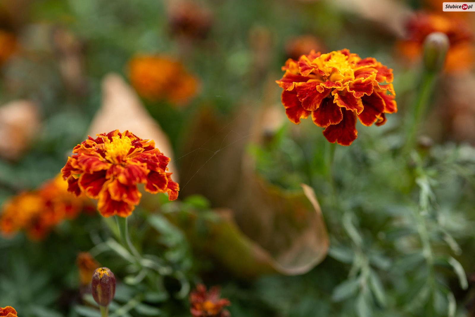 A tych nie brakuje – parkowe alejki usłane liśćmi, przyuliczne drzewa mieniące się ciepłymi kolorami, a między nimi wciąż kwitnące astry, aksamitki i róże. Mimo chłodniejszych dni wciąż jest na co popatrzeć.