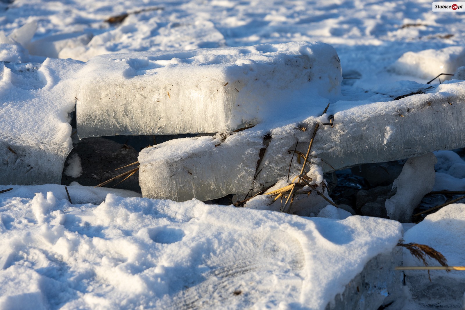 Krótkotrwałe ocieplenie zmieniło sytuację. Lód ruszył, a Odra ponownie zaczęła swobodnie płynąć. Nurt porwał tafle i wyrzucił je na brzeg. Dziś wzdłuż rzeki zalegają grube, duże kry, które miejscami sięgają aż do wału przeciwpowodziowego. Niektóre bryły zostały wypiętrzone wysoko przez napierające kolejne tafle, tworząc nieregularne lodowe zwały.