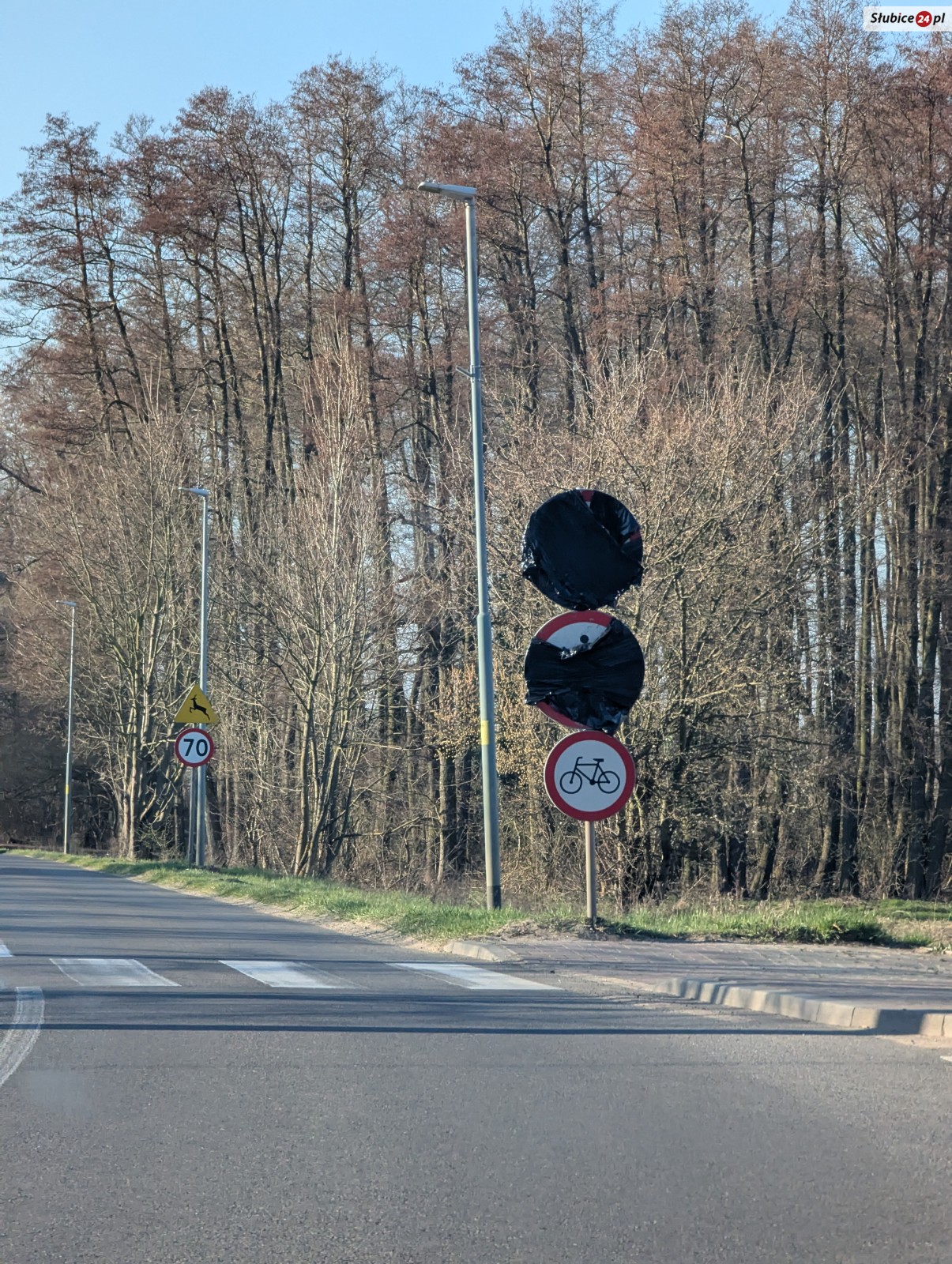 Na ul. Rzepińskiej widać już pierwsze zmiany: pojawiły się znaki o robotach drogowych oraz zakazie korzystania ze ścieżki i zniknęła część wcześniejszego oznakowania.