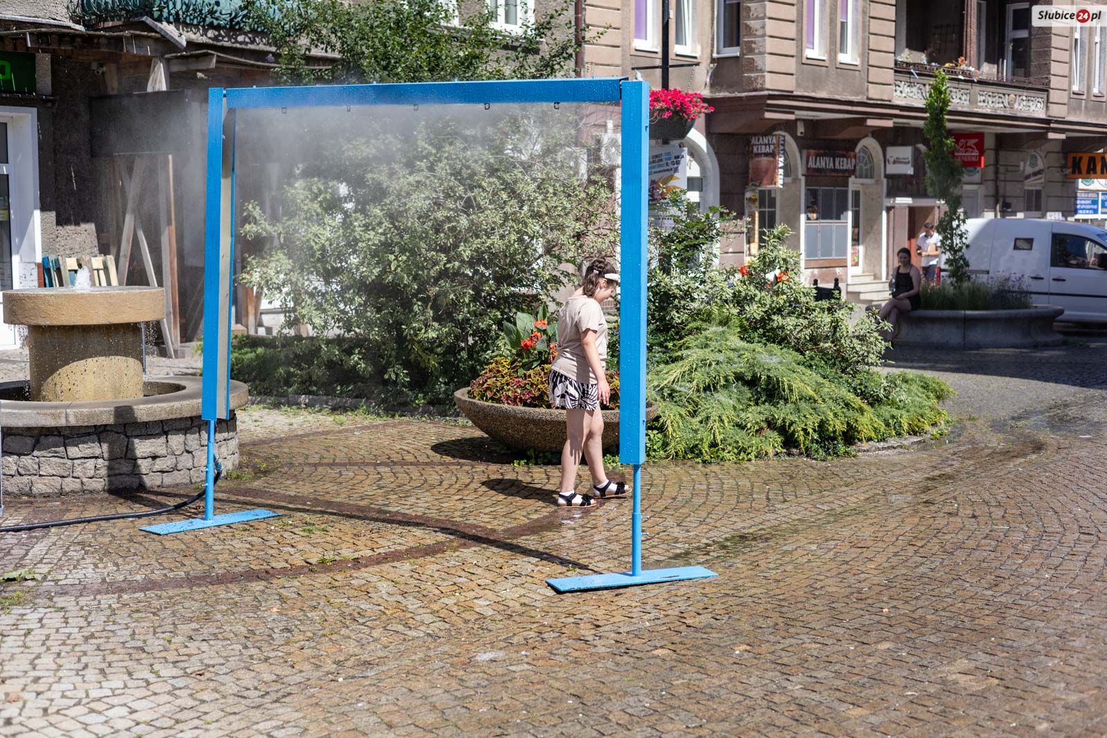 Po krótkiej przerwie z powodu chłodniejszych dni, kurtyny wodne działają już pełną parą. Chętnych do skorzystania z orzeźwiającej wodnej mgiełki nie brakuje, szczególnie podczas upalnej pogody.