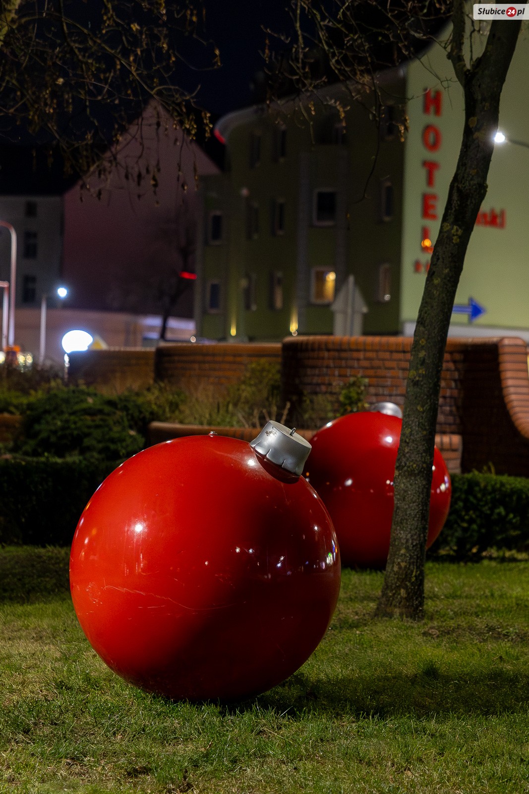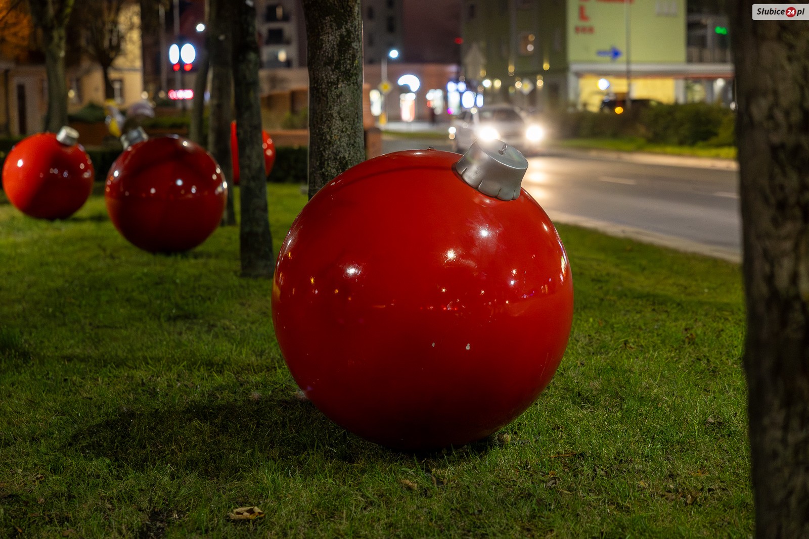 Świąteczny klimat powoli wkracza do Słubic. W przestrzeni miejskiej pojawiły się pierwsze bożonarodzeniowe dekoracje – w tym dobrze znane mieszkańcom czerwone bombki oraz świecąca iluminacja.