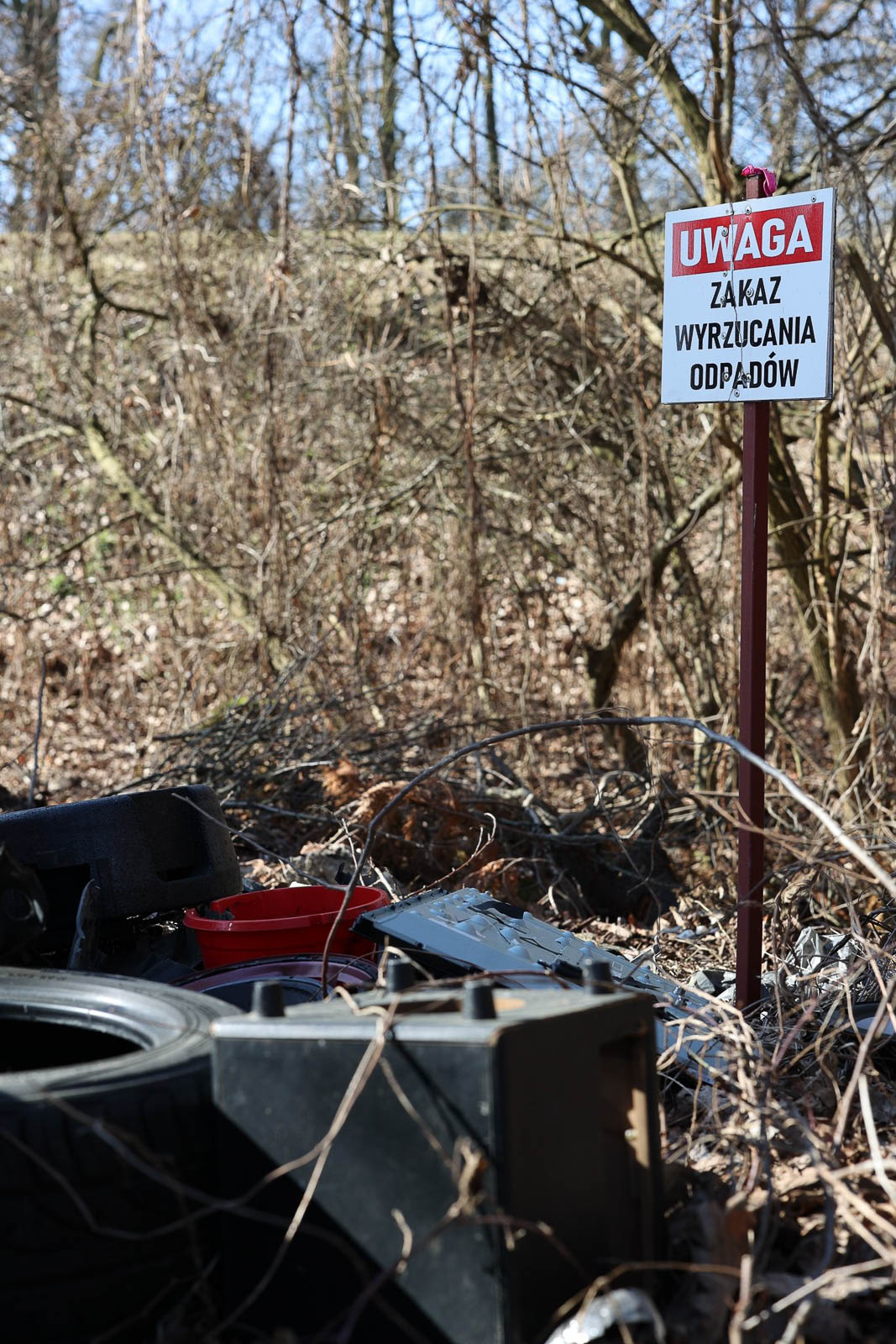 Na początku marca rezerwacie po raz kolejny natrafiono na porzucone odpady. Wśród nich znalazły się m.in. elementy samochodowe, opona, części sprzętu elektronicznego oraz różnego rodzaju tworzywa sztuczne. Co szczególnie bulwersujące, śmieci zostały pozostawione tuż obok tablicy informującej o zakazie wyrzucania odpadów.