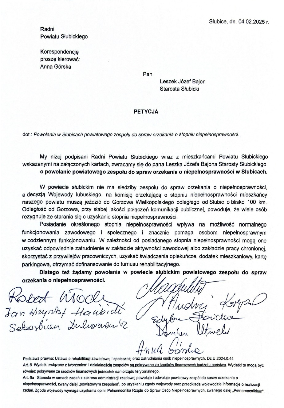Czy w Słubicach powinien powstać Powiatowy Zespół ds. Orzekania o Niepełnosprawności? Chce tego wielu mieszkańców. Grupa radnych powiatu słubickiego postanowiła przygotować petycję w tej sprawie, działania zapowiedziało też Starostwo Powiatowe w Słubicach. Trwa zbiórka podpisów.