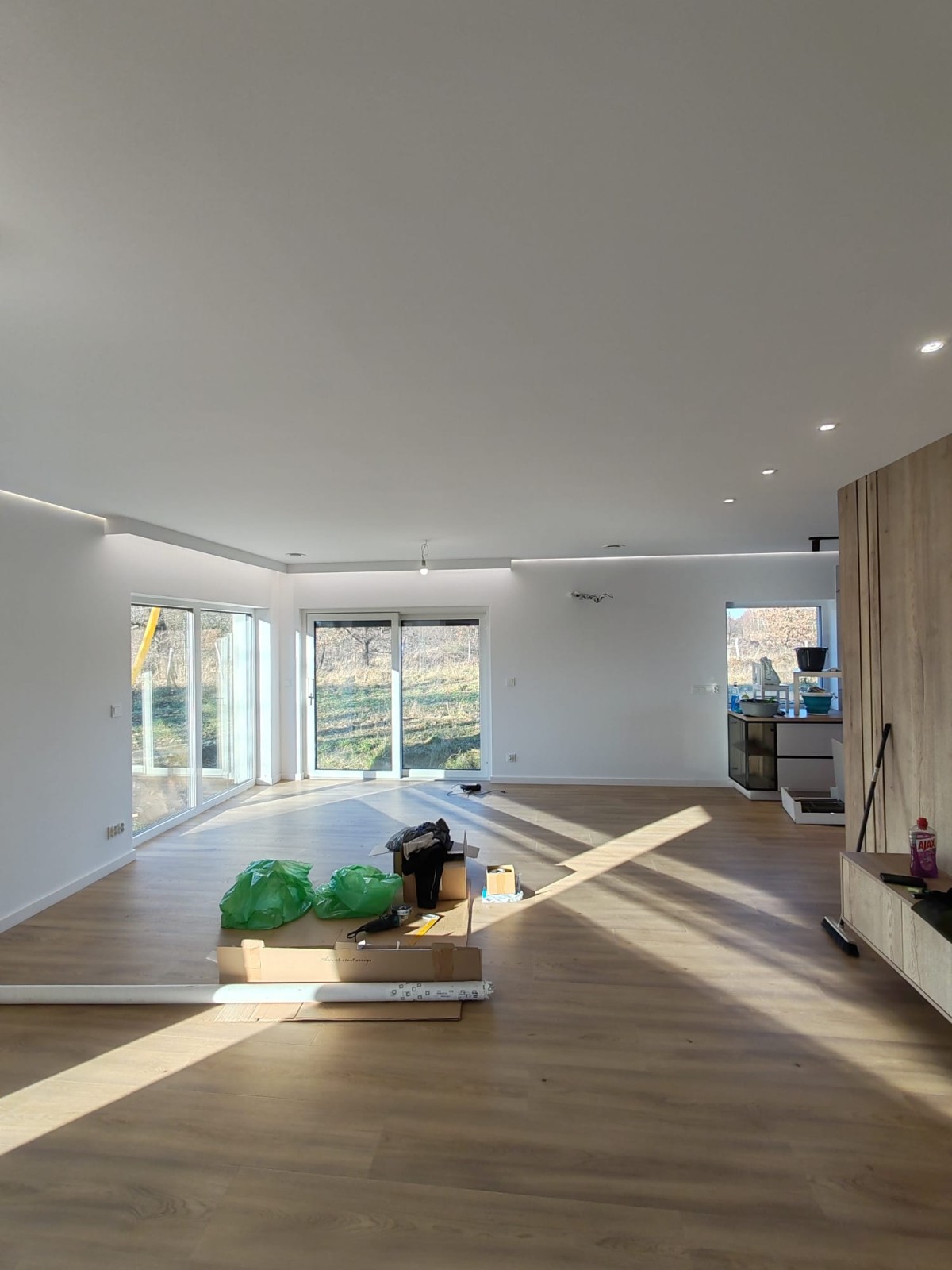 Mowa o domu jednorodzinnym, który możecie zobaczyć poniżej na zdjęciach. Ekipa remontowa firmy Vinsta zajęła się kompleksowo wykończeniem wnętrza. Projekt był stworzony we współpracy z inwestorem - od pierwszych szkiców aż do precyzyjnych prac wykończeniowych i tzw. białego montażu. Nie zabrakło w nim miejsca na kreatywne pomysły i nietuzinkowe rozwiązania.