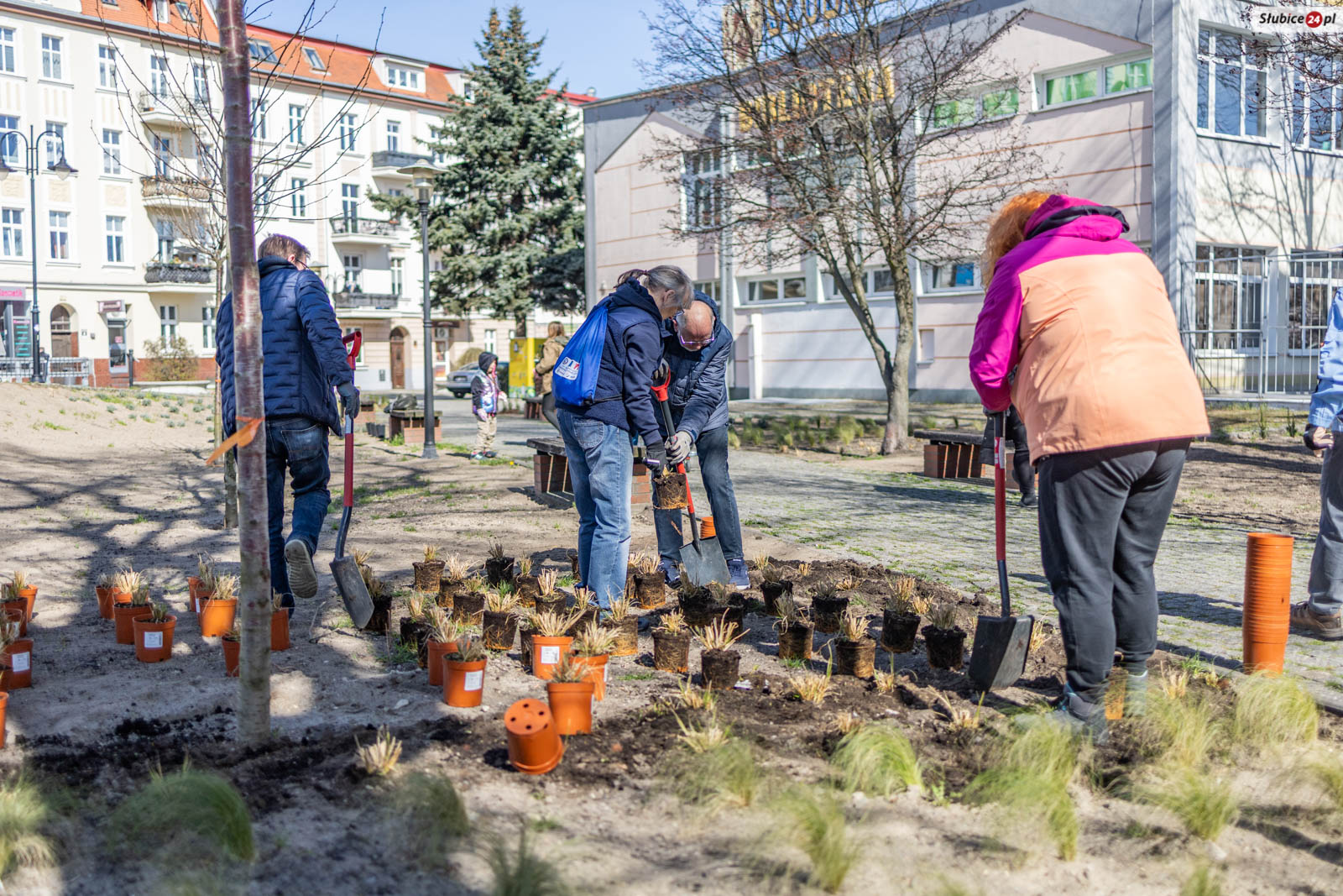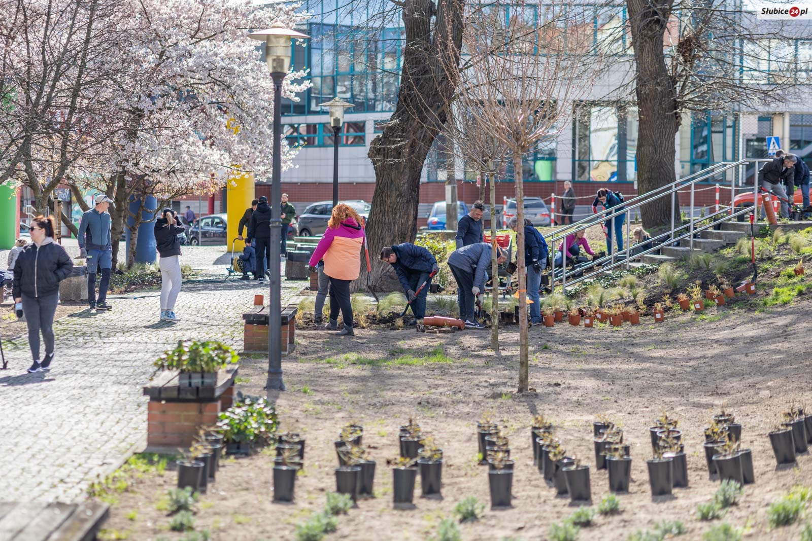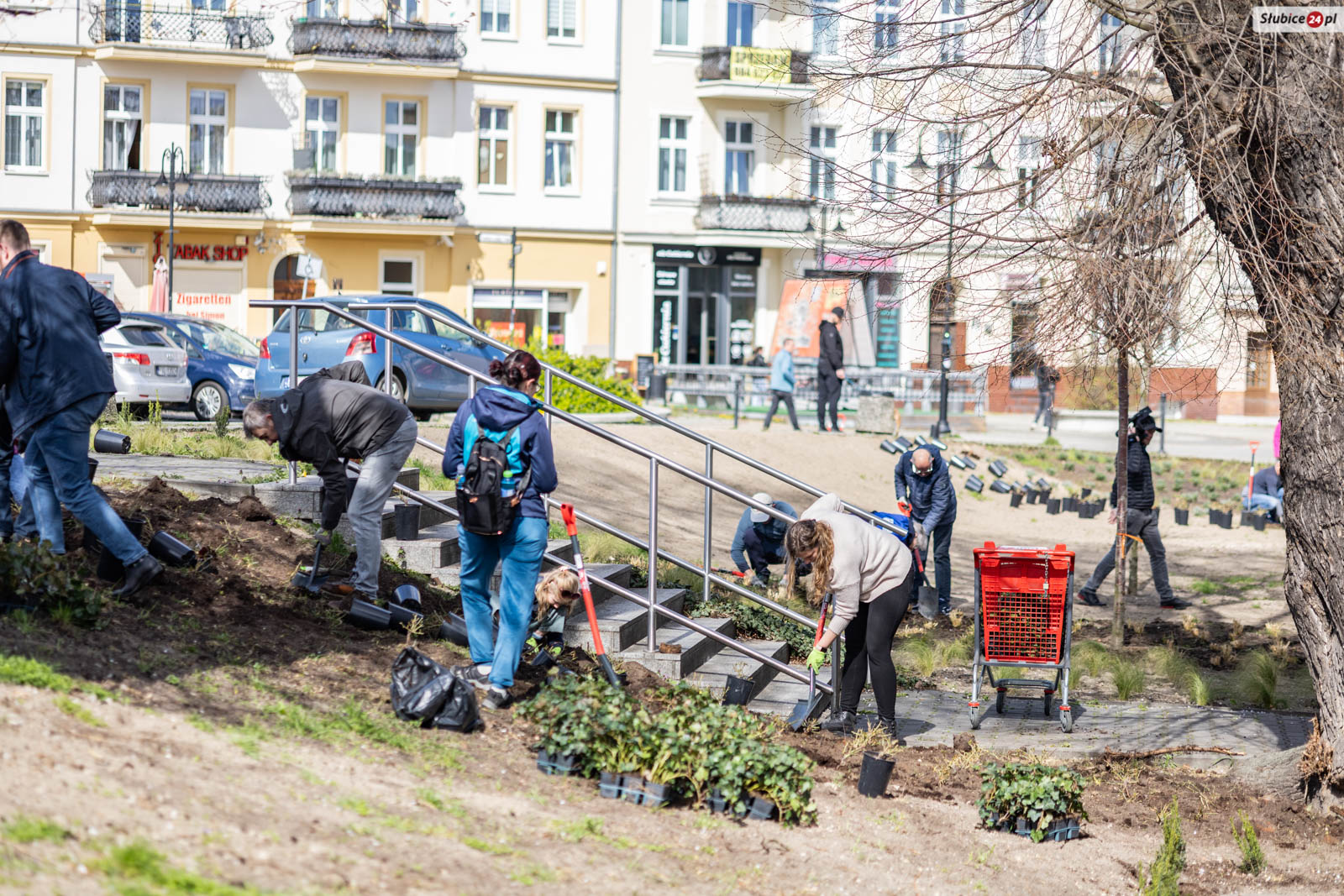 Tym razem frekwencja nie dopisała. W sadzeniu roślin wzięło udział mniej osób niż za pierwszym razem. Brakowało szczególnie młodych ludzi. Do sadzenia roślin przyłączyła się burmistrzyni Słubic ze swoim zastępcą Tomaszem Stefańskim. Całość prac była kordynowana przez architektkę miejską Magdalenę Korską.