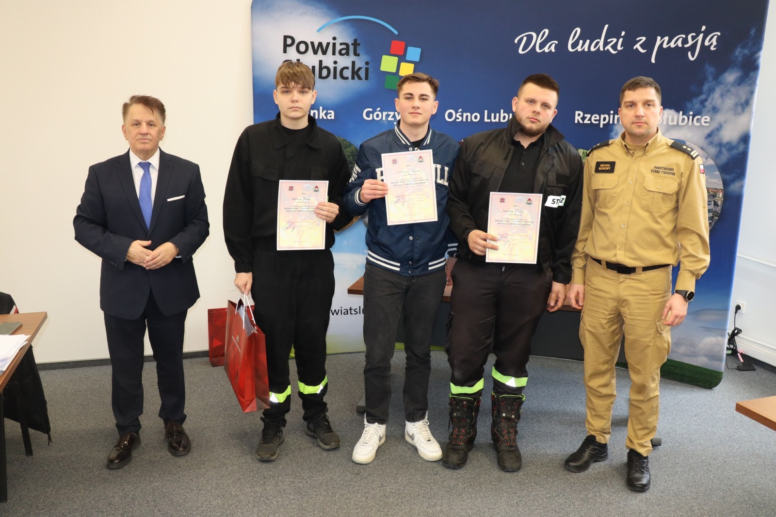 Zwycięzcy konkursu otrzymali nagrody z rąk starosty Leszka Bajona oraz komendanta Michał Borowego.