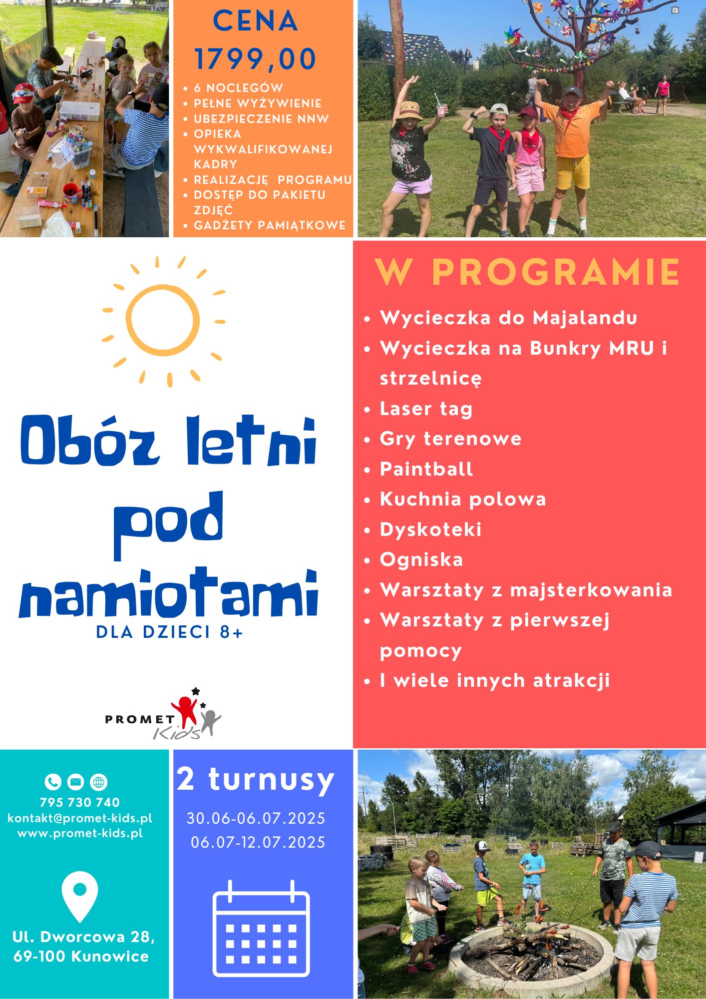 Szukasz wyjątkowego miejsca, gdzie Twoje dziecko spędzi niezapomniane wakacje, z dala od ekranów, w bliskości natury i w gronie rówieśników? Mamy idealną propozycję! Letni obóz pod namiotami w Kunowicach, organizowany przez Fundację Promet Kids, to coś więcej niż zwykłe kolonie. To pełna emocji, wartościowych aktywności i budowania samodzielności przygoda, która zostanie w pamięci na długie lata.