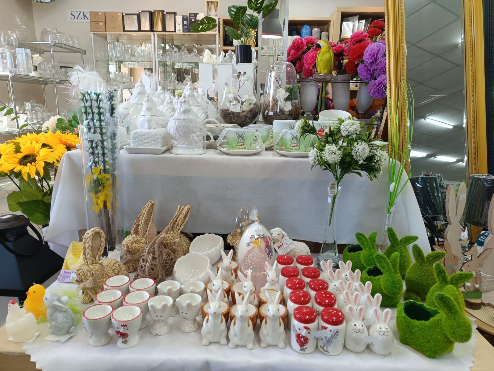 W ofercie sklepu jest bogaty wybór artykułów gospodarstwa domowego: szklanki, kubki, sztućce, kompletne zastawy stołowe, świeczki, lustra, kwietniki, artykuły do sprzątania i utrzymania czystości, patelnie, garnki, ramki na zdjęcia, pojemniki na żywność, kartki okolicznościowe i wiele, wiele innych potrzebnych w domu.