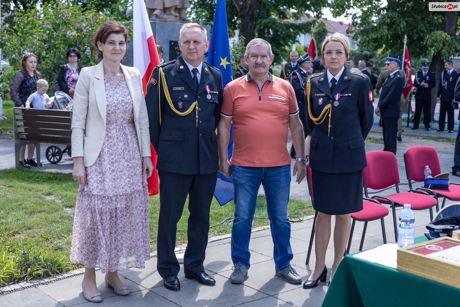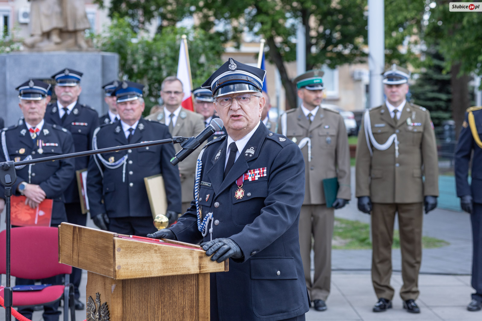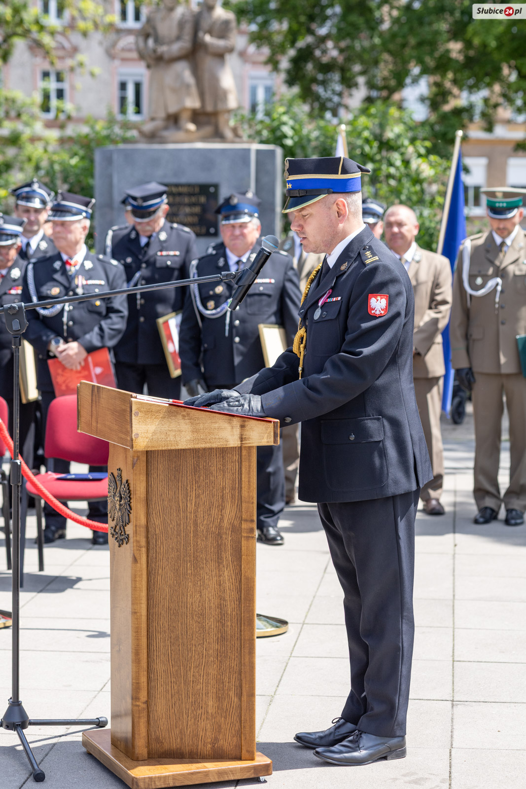 Starosta słubicki Leszek Bajon, pełniący funkcję prezesa zarządu Oddziału Powiatowego ZOSP RP, nawiązał do symbolicznego znaczenia miejsca obchodów. – Znajdujemy się na placu Bohaterów i trudno o lepsze miejsce, by uczcić ten dzień. Swój mundur noście z dumą, a z każdej akcji wracajcie bezpiecznie do swoich bliskich – apelował.