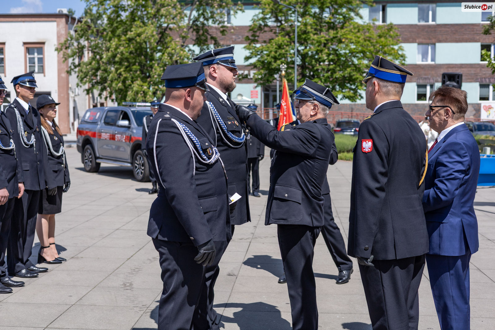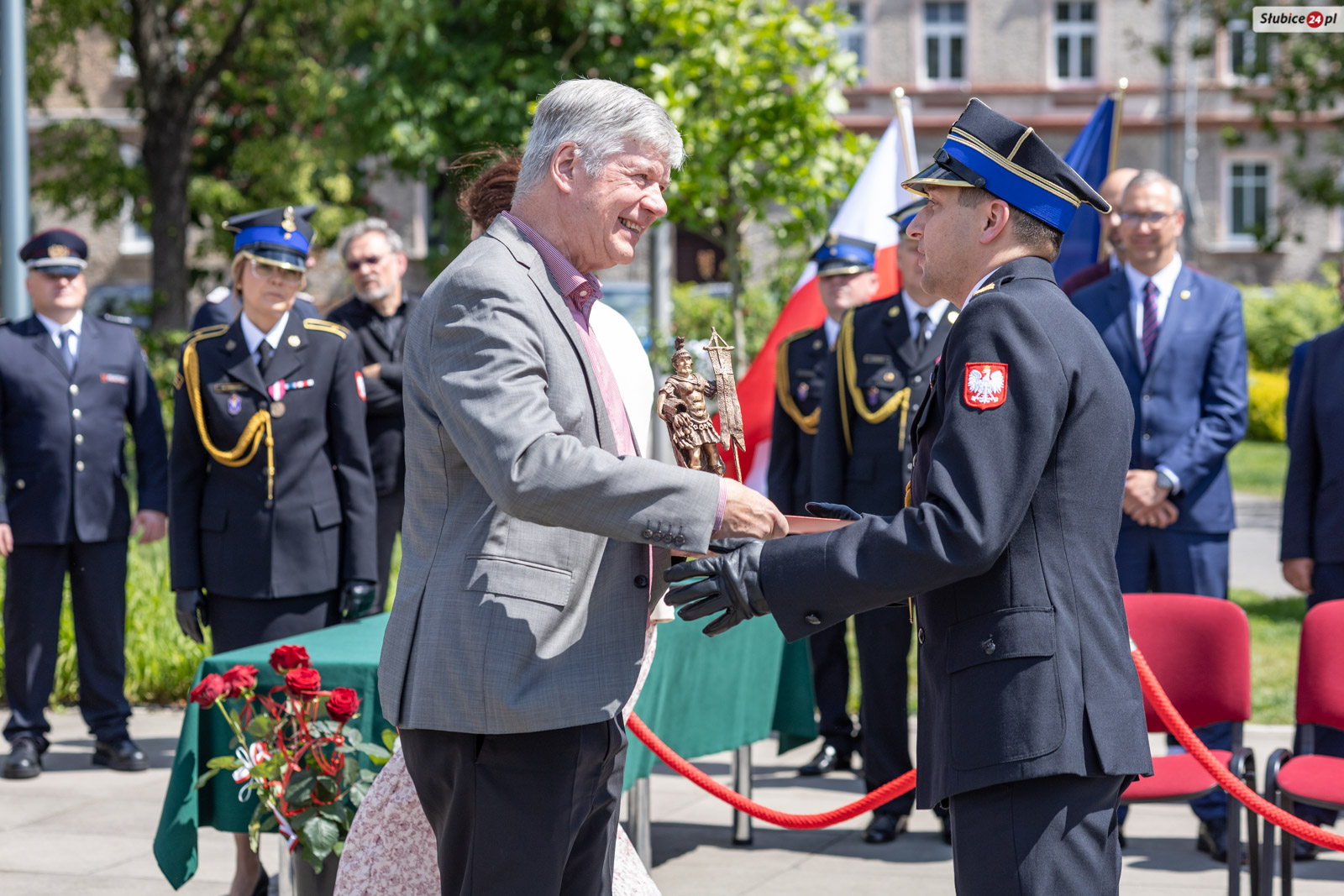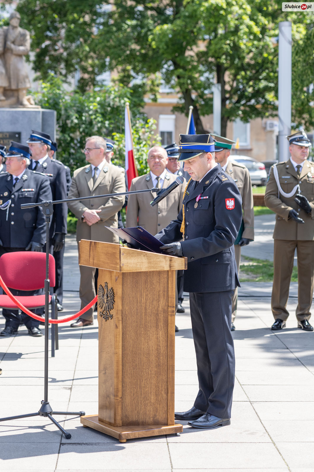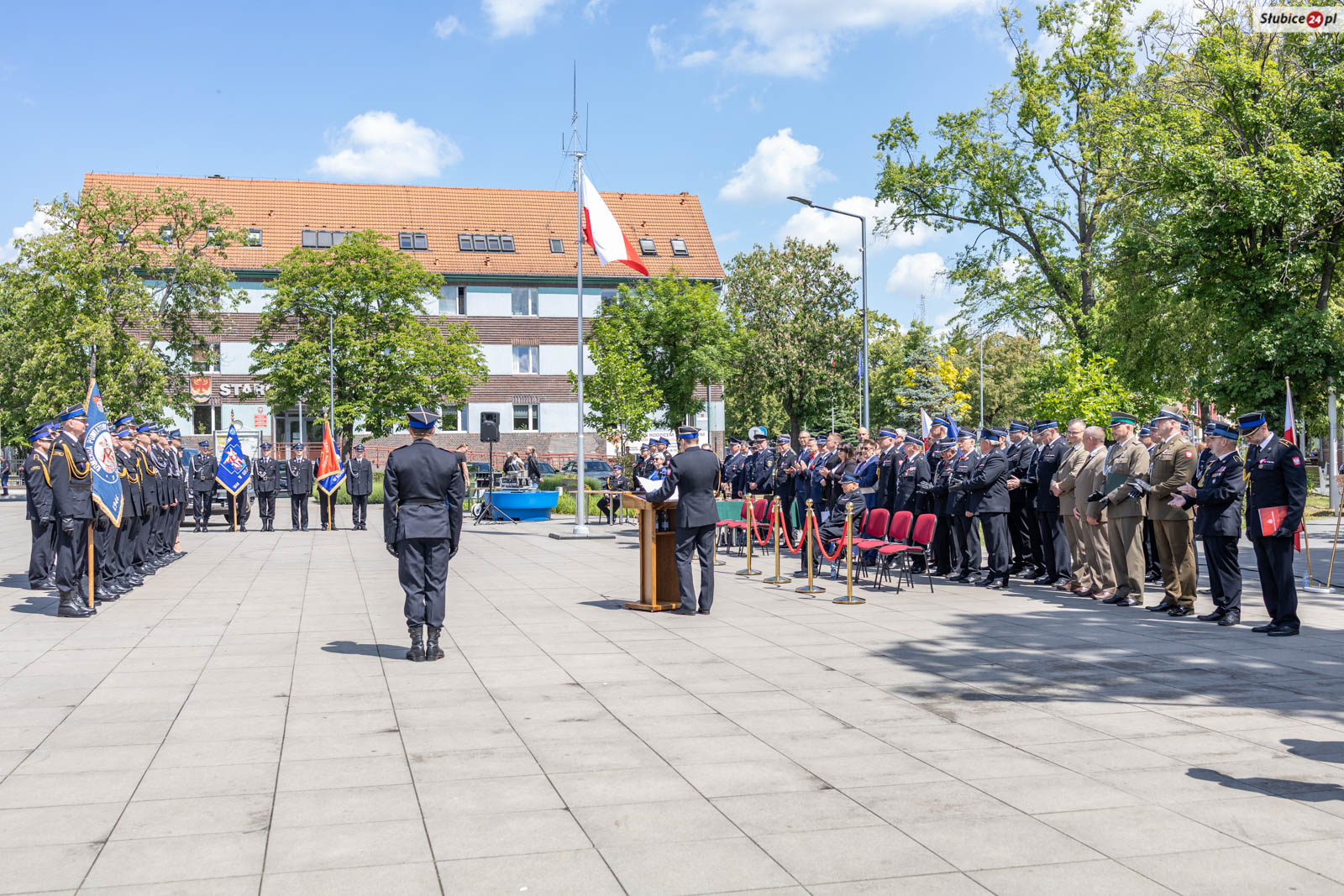 Starosta słubicki Leszek Bajon, pełniący funkcję prezesa zarządu Oddziału Powiatowego ZOSP RP, nawiązał do symbolicznego znaczenia miejsca obchodów. – Znajdujemy się na placu Bohaterów i trudno o lepsze miejsce, by uczcić ten dzień. Swój mundur noście z dumą, a z każdej akcji wracajcie bezpiecznie do swoich bliskich – apelował.