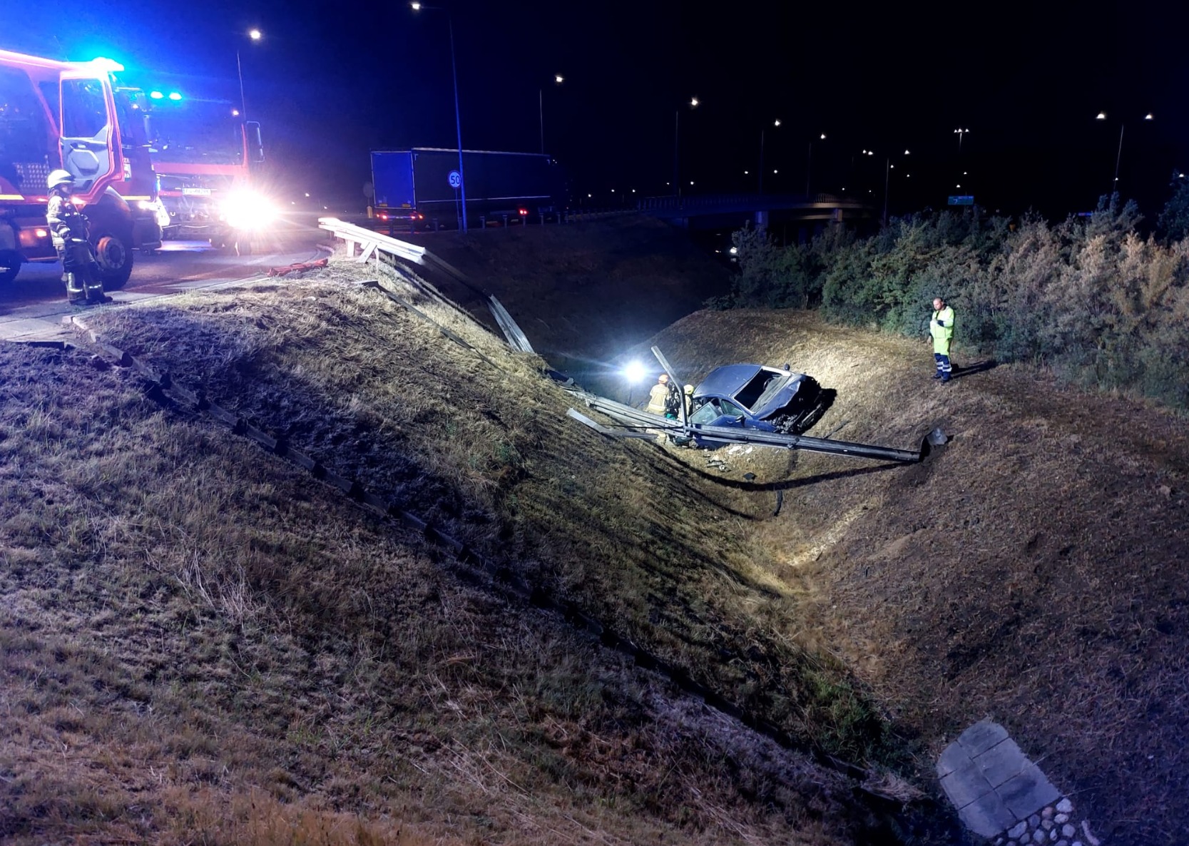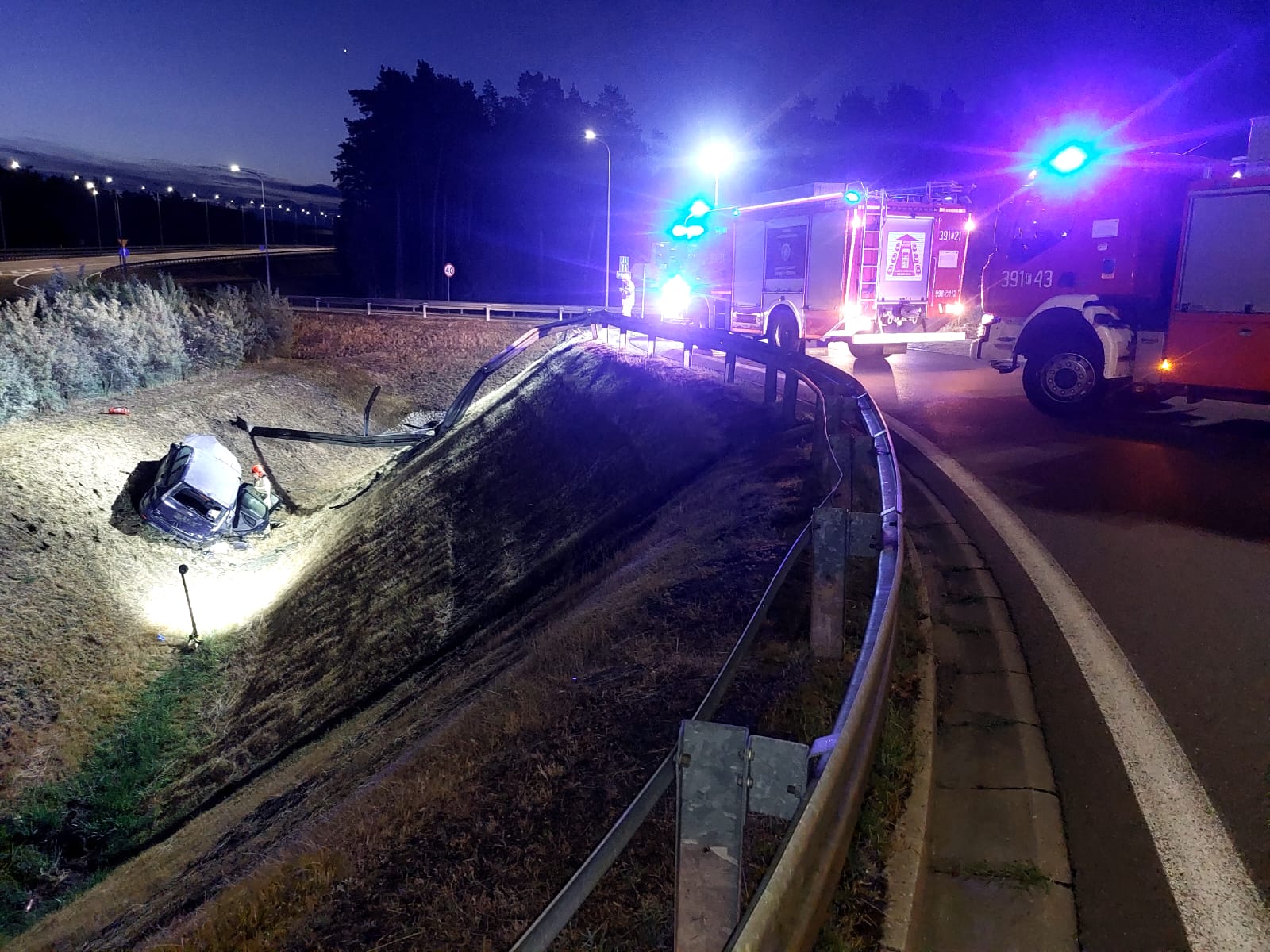W nocy z 10 na 11 lipca doszło do groźnie wyglądającego wypadku przy węźle autostradowym A2/DK92 w Rzepinie. Samochód osobowy wypadł z ronda i spadł z nasypu. Jedna osoba została poszkodowana.