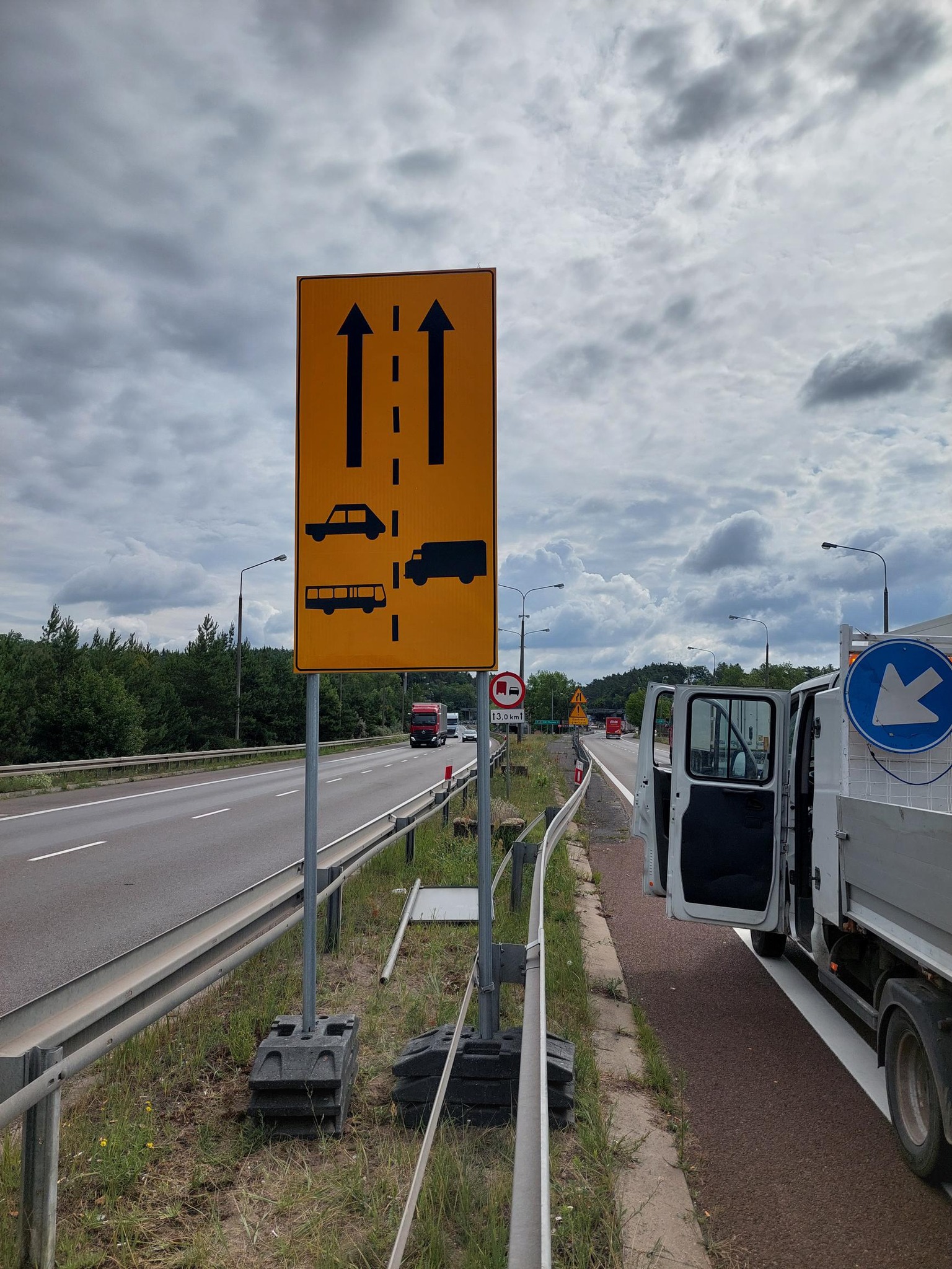 Postawiono też znak zakazu wyprzedzania przez samochody ciężarowe oraz usunięto znajdujące się na jezdni separatory pasów ruchu.