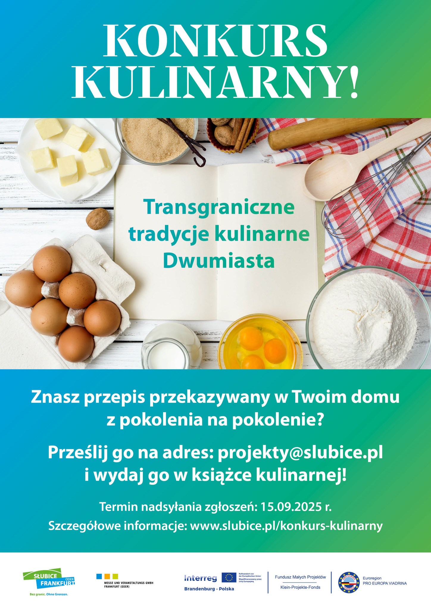 Znasz danie, które od lat gości na rodzinnym stole? Przepis przekazywany z pokolenia na pokolenie? Gmina Słubice i miasto Frankfurt nad Odrą szukają właśnie takich smaków! Rusza konkurs „Transgraniczne tradycje kulinarne Dwumiasta” – dla mieszkańców z obu stron Odry.