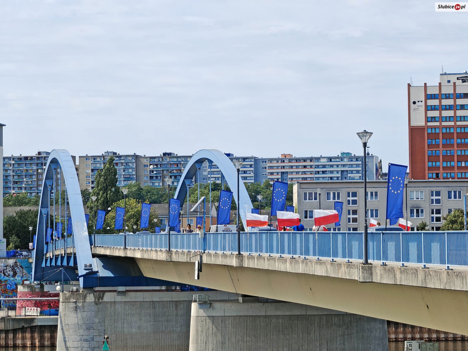 Sporu o flagi na moście w Słubicach ciąg dalszy. Po tym, jak aktywiści Ruchu Obrony Granic powiesili na nim biało-czerwone flagi, wkrótce pojawiły się także flagi Unii Europejskiej, a nawet flagi… ukraińskie i tęczowe. W trakcie zawieszania tych ostatnich doszło do utarczek słownych.