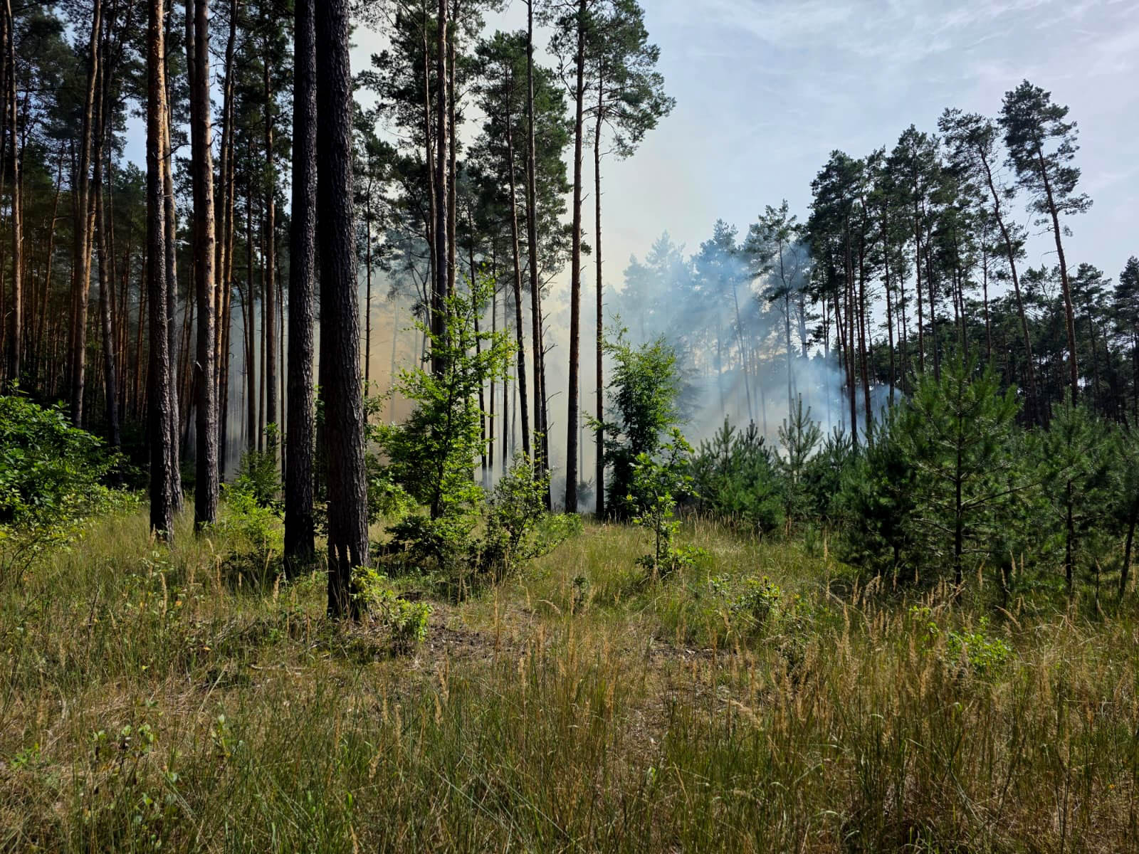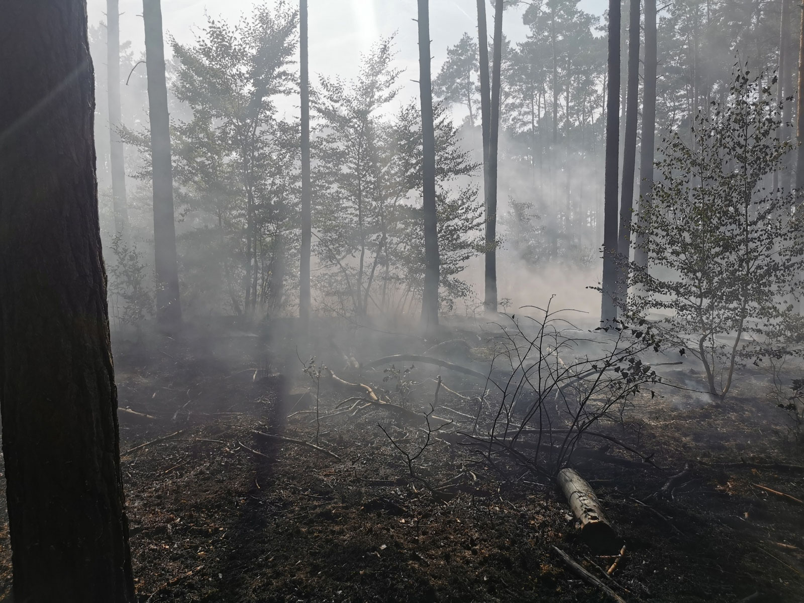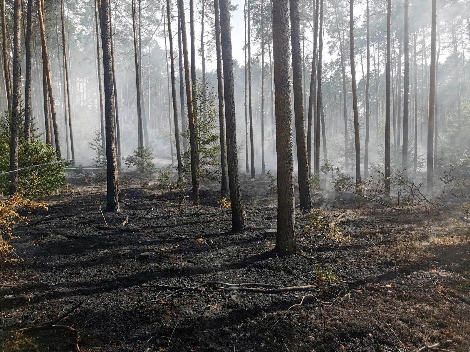 Po opanowaniu i ugaszeniu ognia, dalsza część akcji polegała na przelaniu wodą pogorzeliska w celu wyeliminowania wszelkich zarzewi ognia. Cała akcja trwała ponad 3 godziny. Ostatecznie spłonął około 1 hektar ściółki leśnej.
