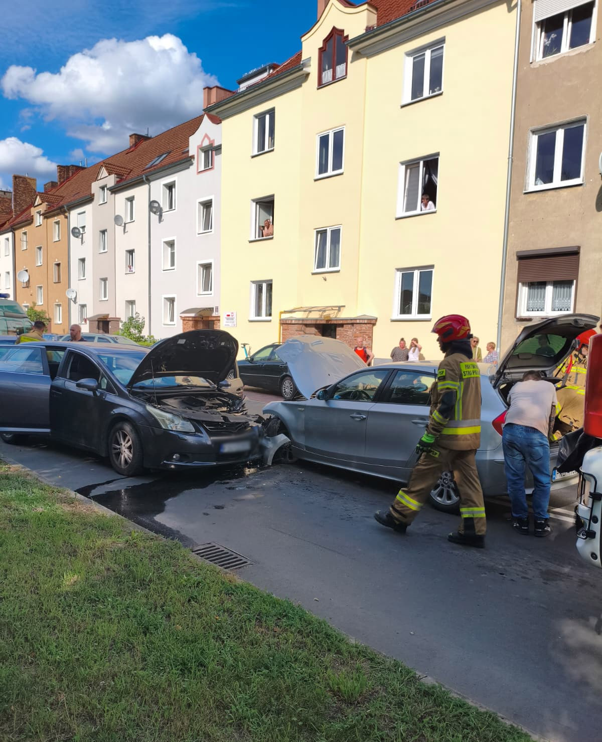 Do groźnie wyglądającego zdarzenia doszło 1 września przed godz. 16 na skrzyżowaniu ul. Krótkiej i Narutowicza. Czołowo zderzyły się dwa samochody osobowe.