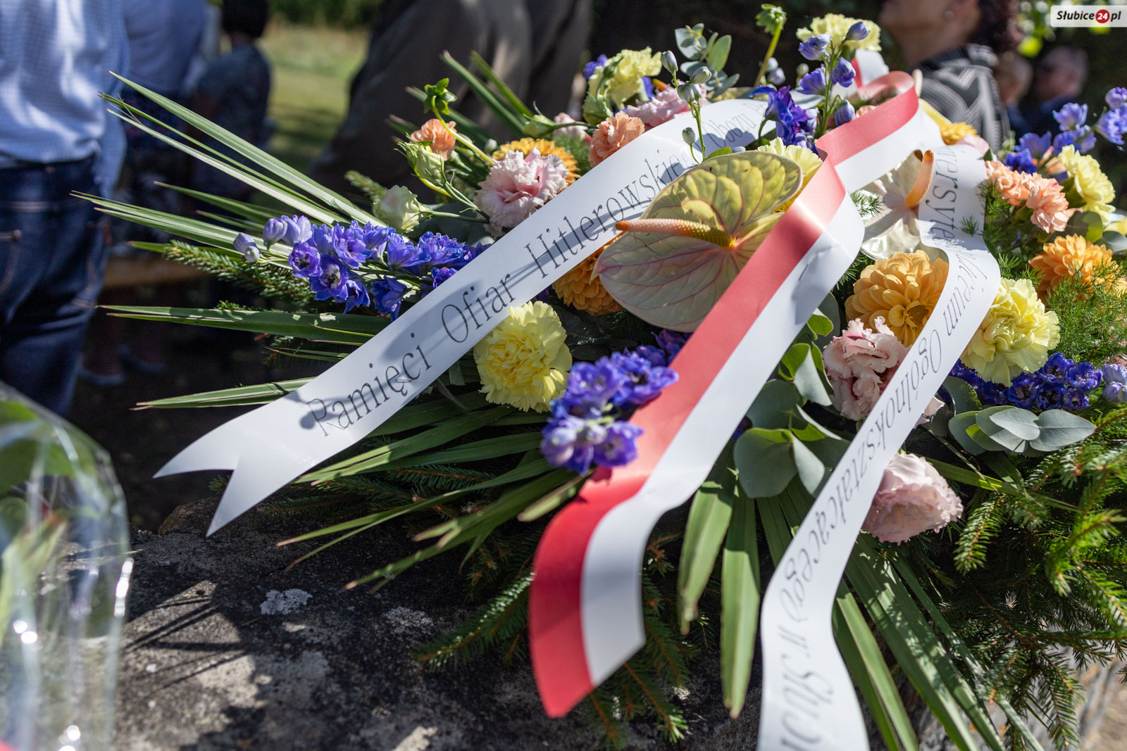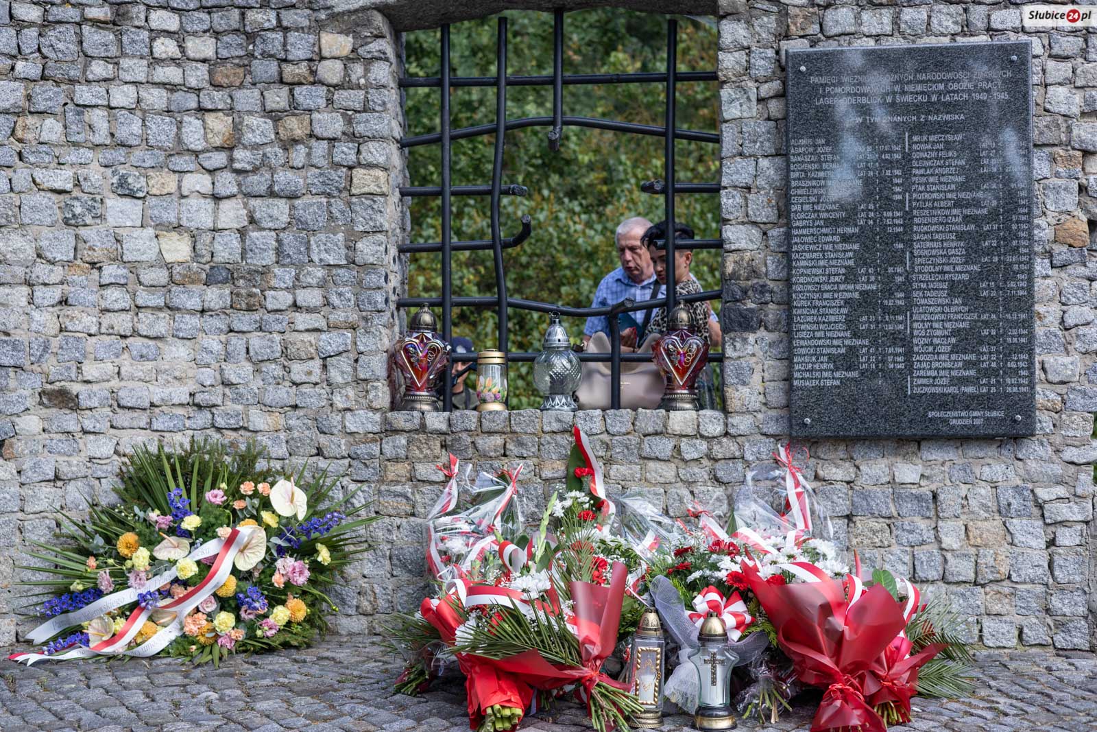 Zwieńczeniem uroczystości było złożenie kwiatów i zapalenia zniczy pod pomnikiem upamiętniającym ofiary obozu Oderblick. Wśród delegacji byli m.in. przedstawiciele gminy, powiatu słubickiego, miasta Frankfurt nad Odrą, organizacji kombatanckich, służb mundurowych oraz lokalnych instytucji, szkół i stowarzyszeń.