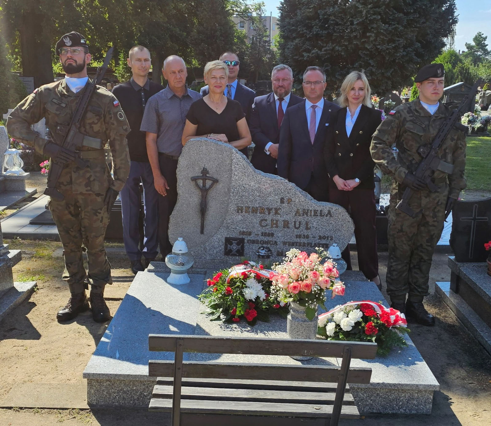 Pod pomnikiem, przy którym wartę honorową pełnili żołnierze Wojska Polskiego, kwiaty złożyli przedstawiciele Instytutu Pamięci Narodowej, burmistrz Rzepina Sławomir Dudzis oraz rodzina śp. Henryka Chrula.