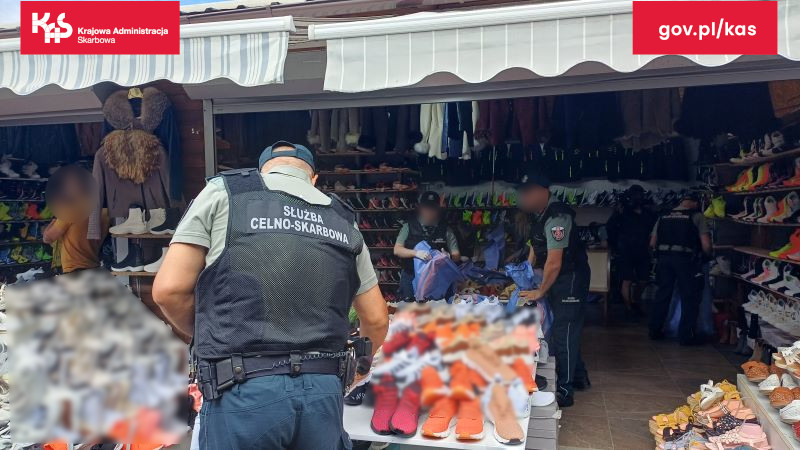 Kolejna akcja funkcjonariuszy Krajowej Administracji Skarbowej na bazarze w Słubicach. Mundurowi skontrolowali jedno ze stoisk handlowych, na którym ujawnili blisko 500 par podrabianych butów.