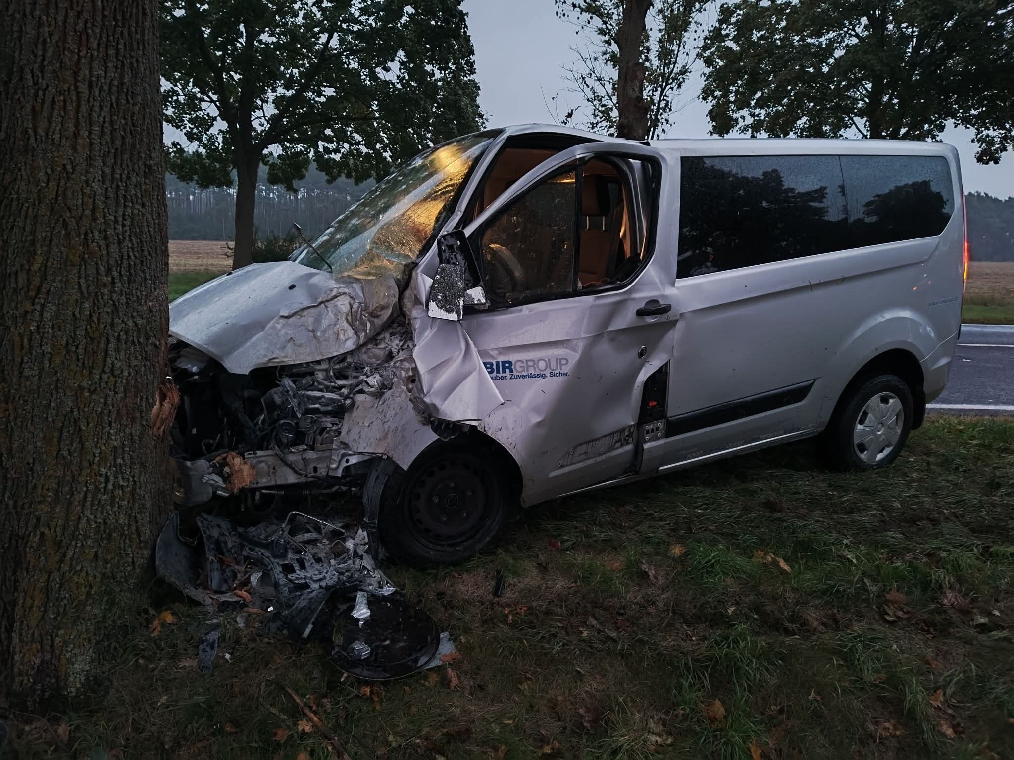 Jak przekazała policja, doszło do zderzenia osobówki z busem, który następnie uderzył w drzewo.