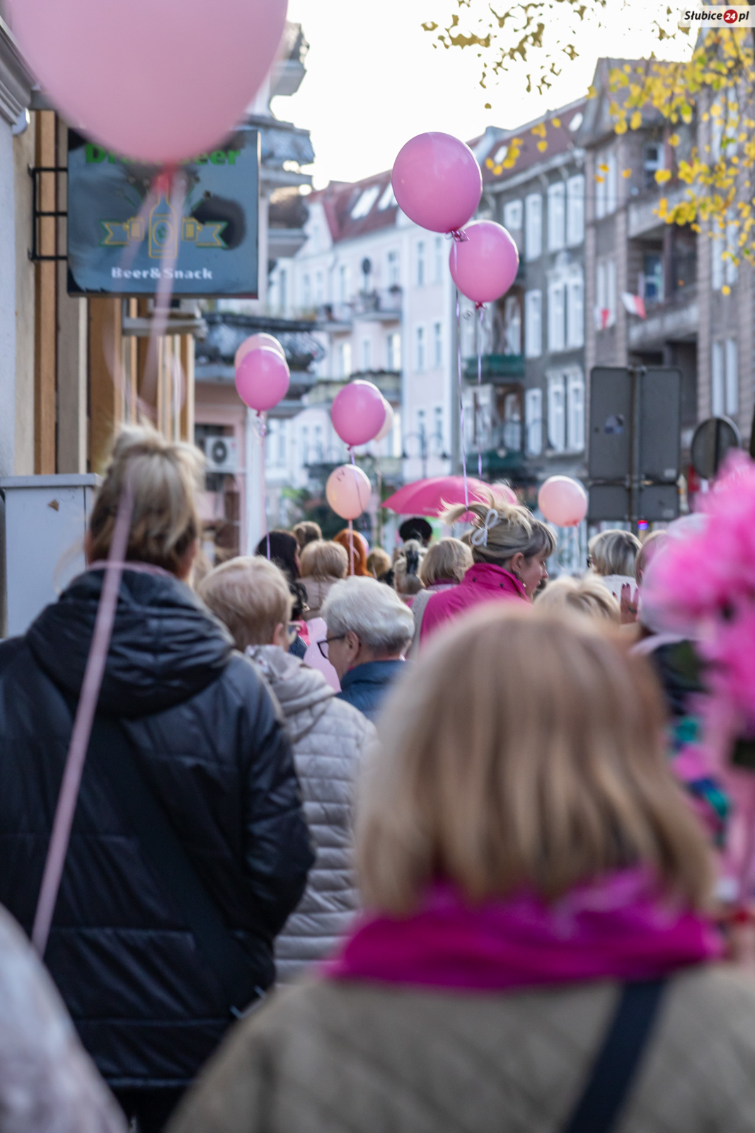 Pochód poprowadzili burmistrzyni Słubic Marzena Słodownik oraz starosta słubicki Leszek Bajon. Trasa spaceru wiodła przez plac Wolności i plac Przyjaźni aż na deptak przy ul. Jedności Robotniczej. Na wysokości Biblioteki Publicznej Miasta i Gminy Słubice uczestnicy zatrzymali się, by wspólnie wypuścić w niebo różowe balony – gest pamięci, nadziei i solidarności.