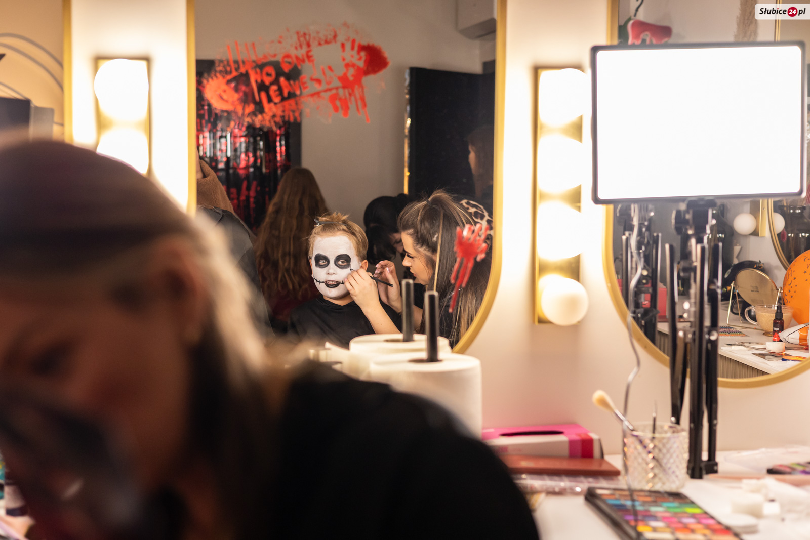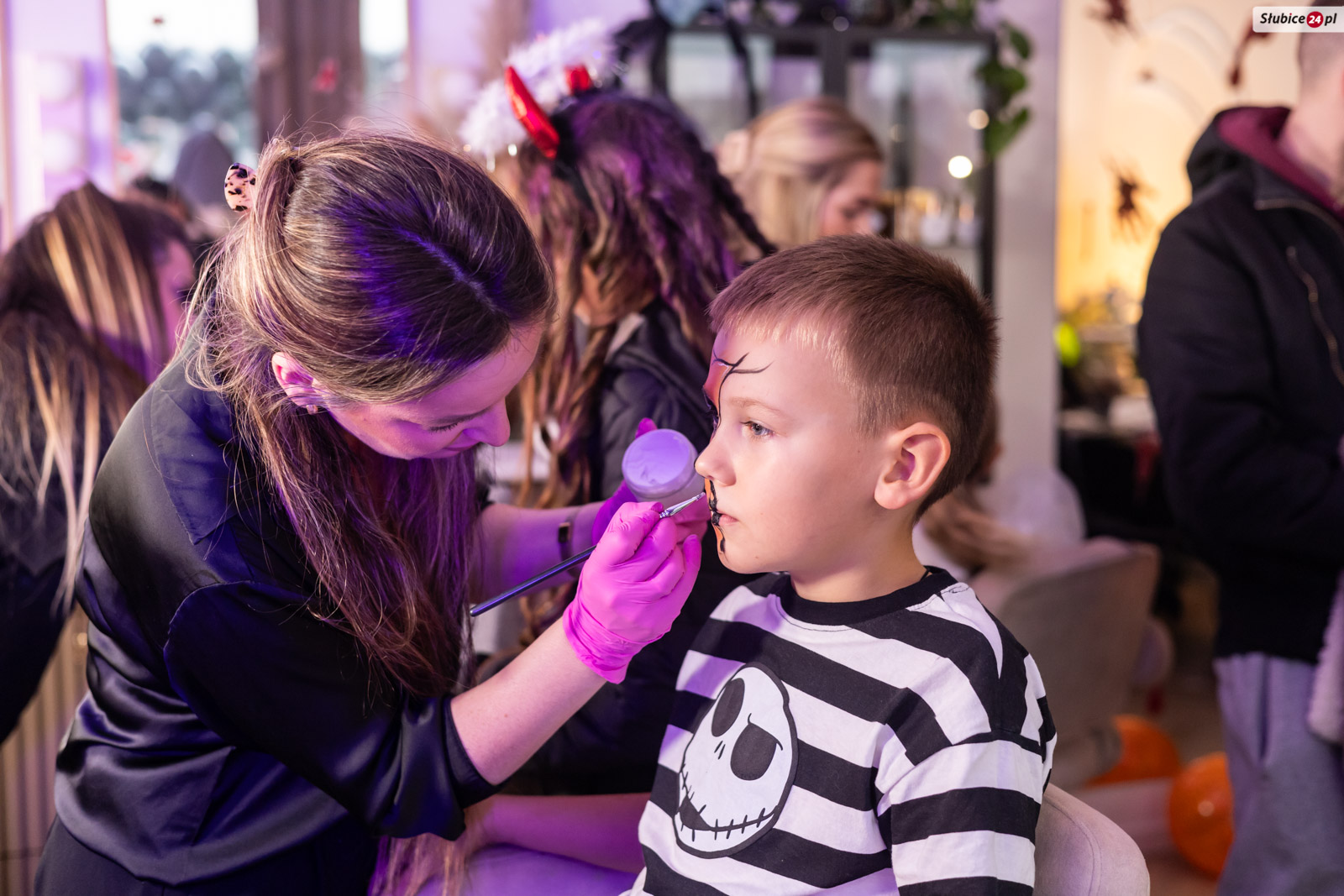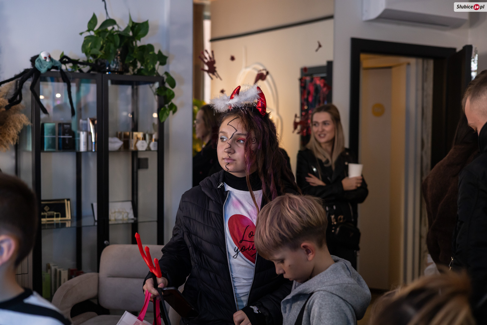 W salonie przy ul. Piłsudskiego 1 królowały halloweenowe klimaty – były kolorowe makijaże, świecące tatuaże, balonowe dekoracje, a także możliwość pomalowania własnej torebki na cukierki. Na uczestników czekał również słodki poczęstunek – domowe ciasta, przekąski, kawa i napoje. Cały salon – w środku i na zewnątrz – został udekorowany w duchu Halloween.