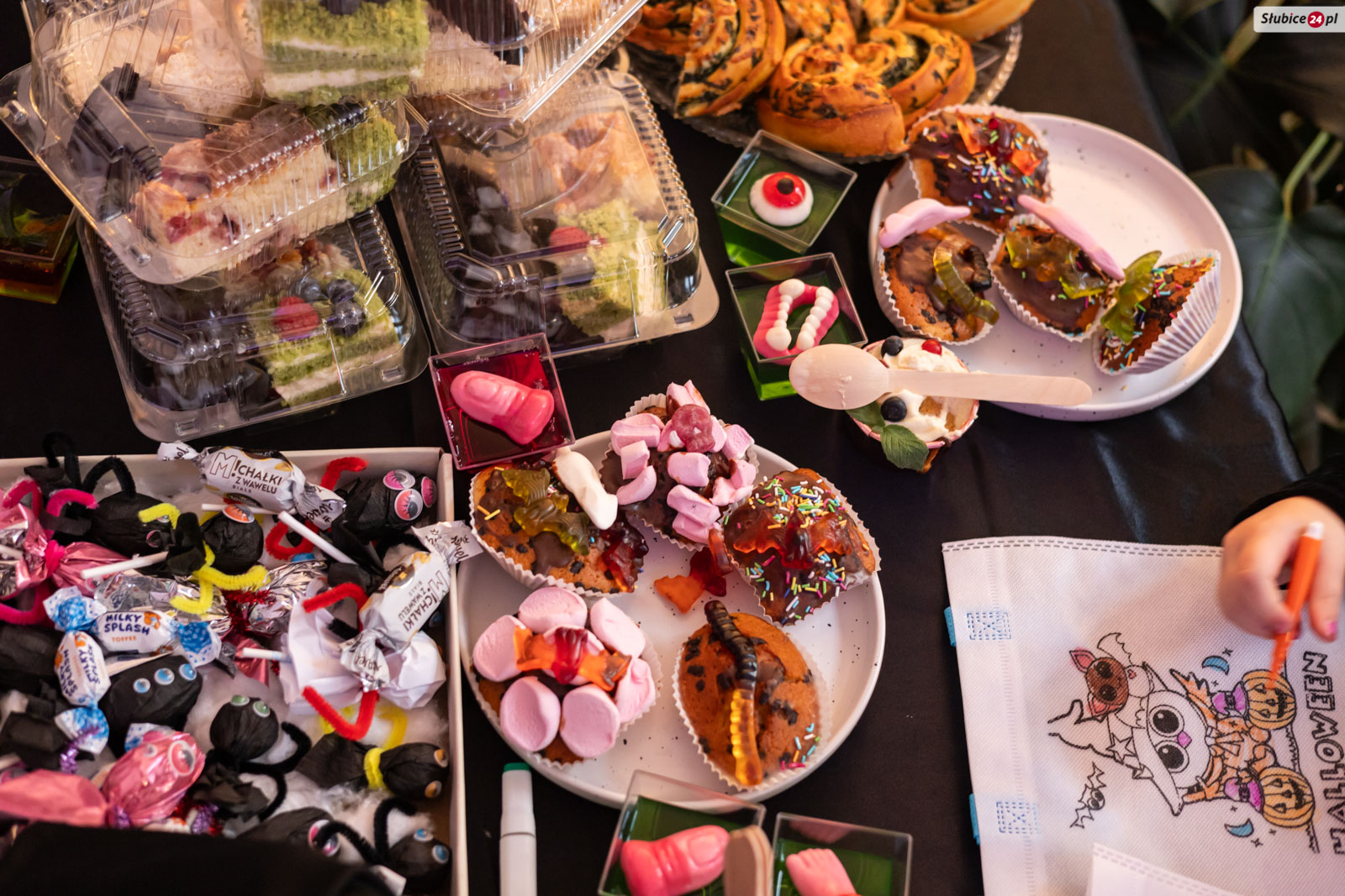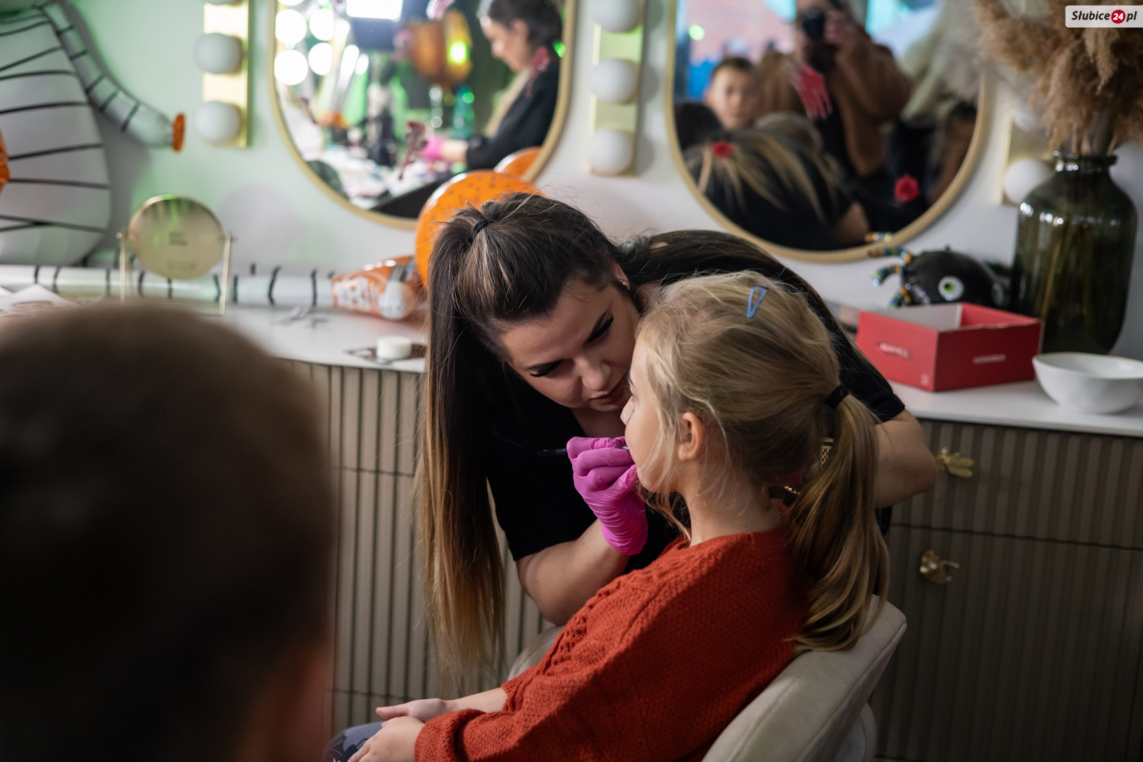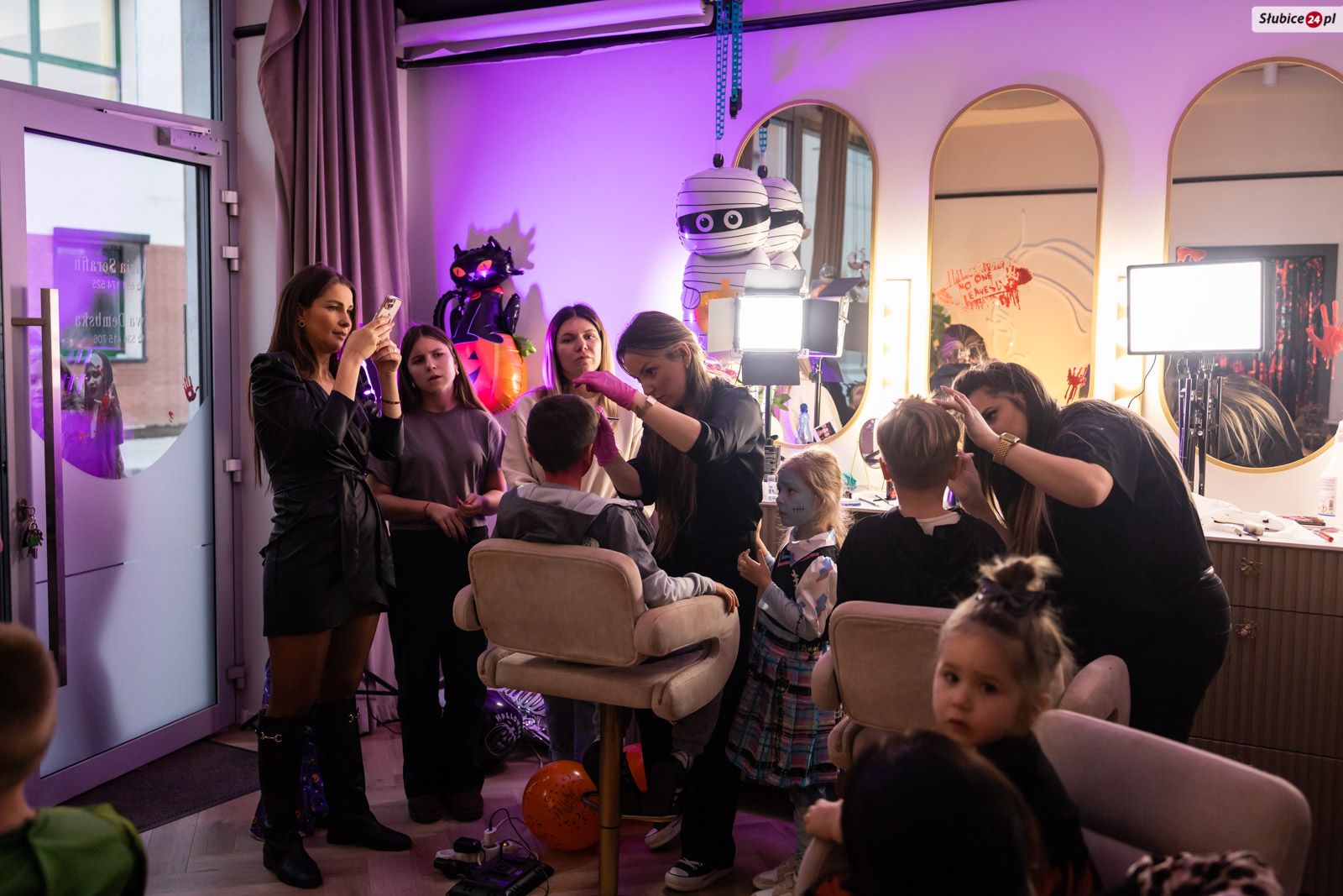 W salonie przy ul. Piłsudskiego 1 królowały halloweenowe klimaty – były kolorowe makijaże, świecące tatuaże, balonowe dekoracje, a także możliwość pomalowania własnej torebki na cukierki. Na uczestników czekał również słodki poczęstunek – domowe ciasta, przekąski, kawa i napoje. Cały salon – w środku i na zewnątrz – został udekorowany w duchu Halloween.