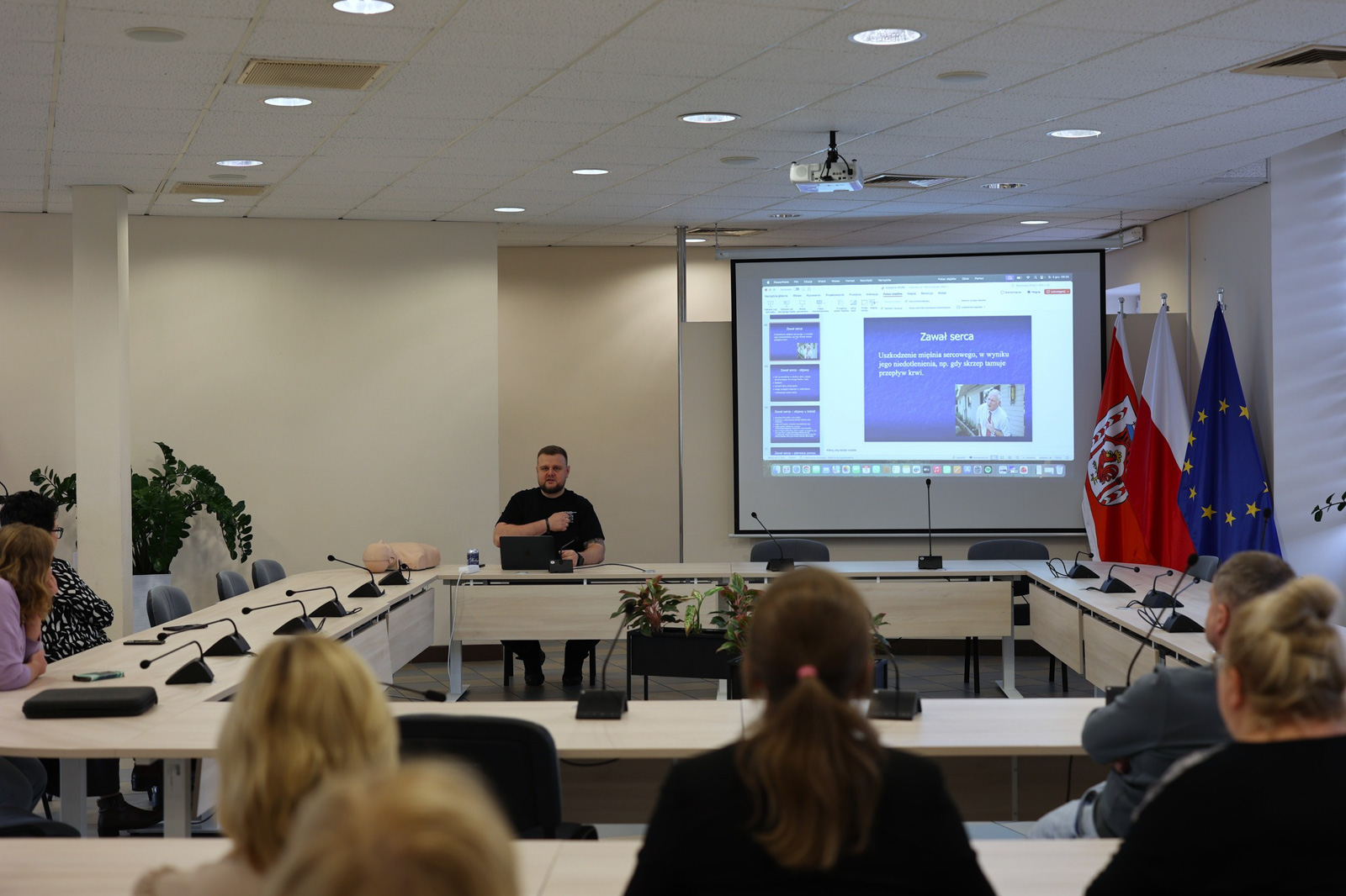 Oprócz epizodów ćwiczeniowych urzędnicy wzięli także udział w szkoleniu z pierwszej pomocy przedmedycznej, obejmującym m.in. resuscytację, pomoc przy zadławieniu czy utracie przytomności. Zajęcia prowadził Łukasz Skorek - ratownik medyczny, naczelnik słubickiego OSP oraz radny.