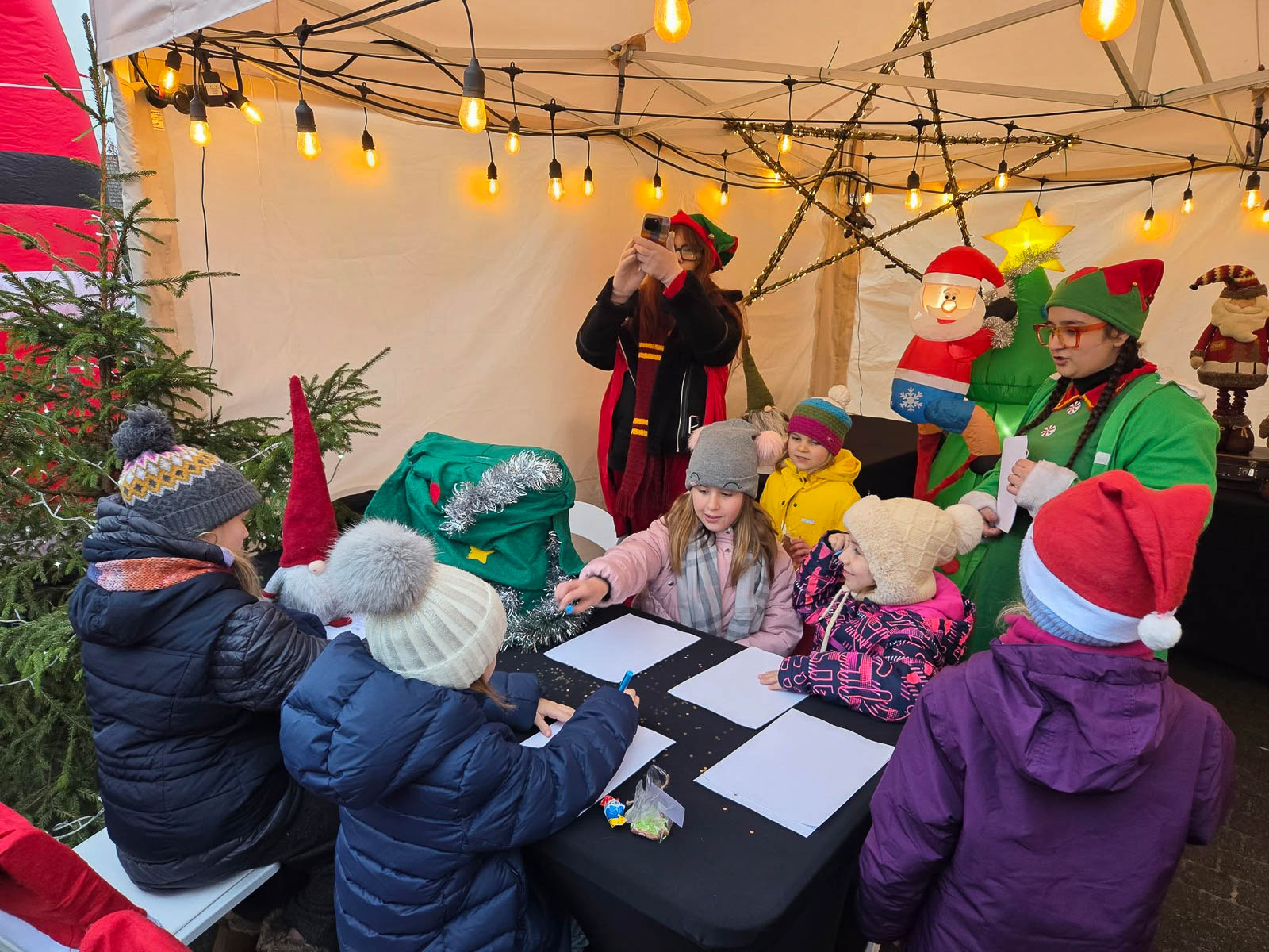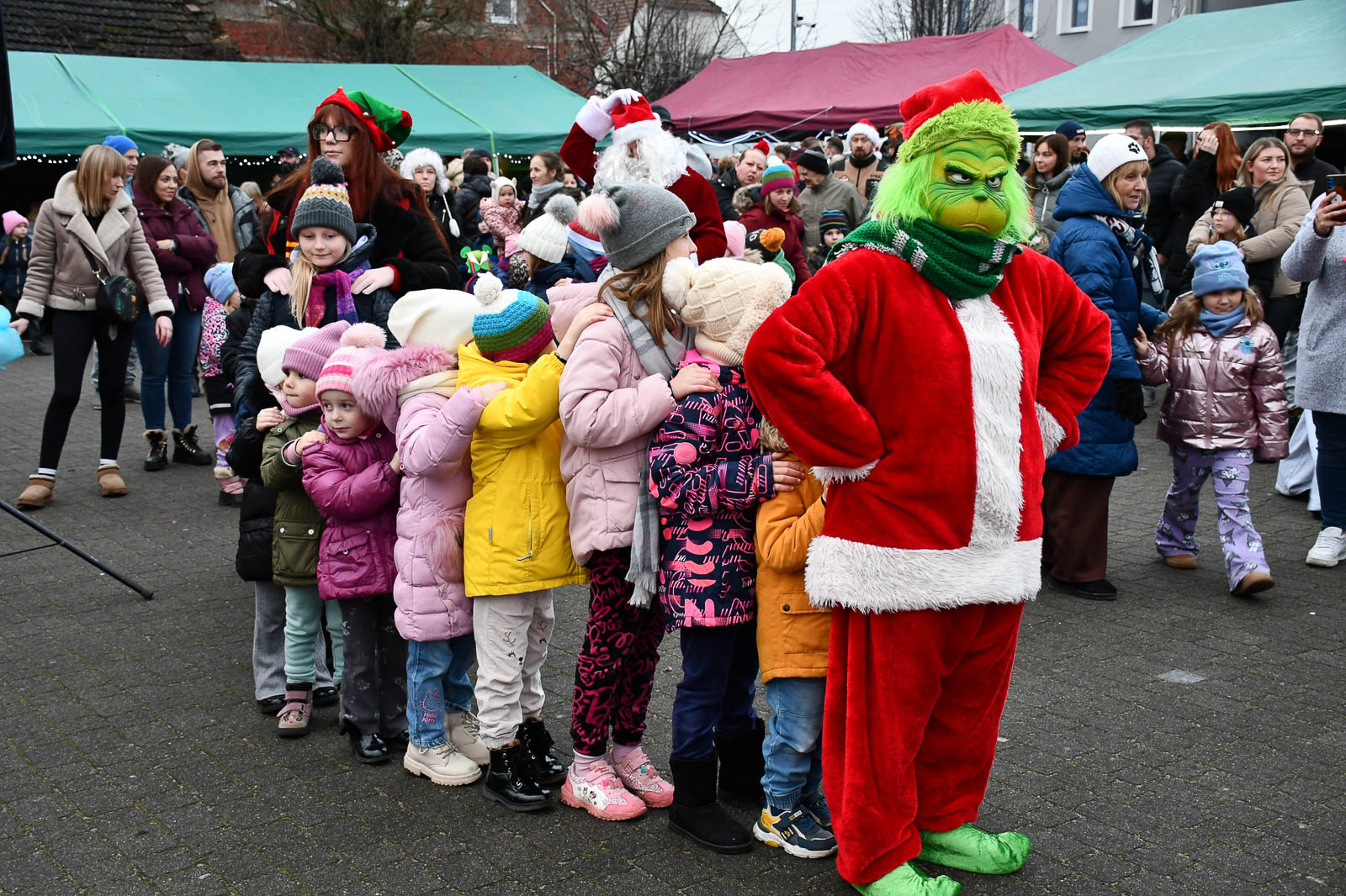 Dla najmłodszych przygotowano strefę animacji, spotkanie ze świętym mikołajem i elfami oraz nietypową atrakcję – maszynkę do niszczenia złych uczynków. Dodatkowym zaskoczeniem było pojawienie się dwóch Grinchów. Na scenie wystąpili m.in. przedszkolaki z Białkowa i Cybinki, uczennice Społecznego Ogniska Muzycznego i zespół „Antidotum”.