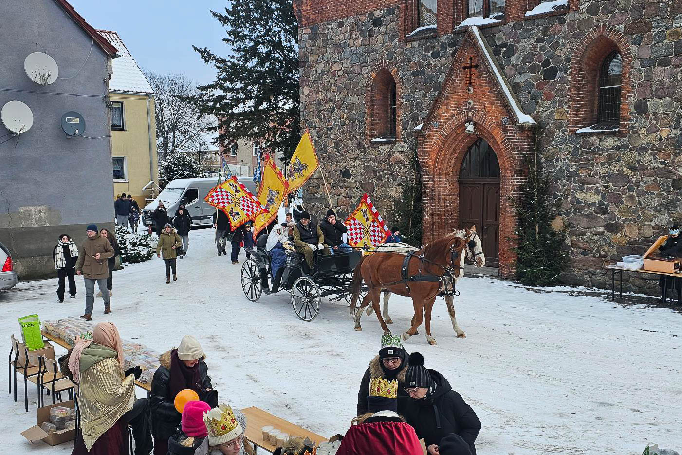 Po oficjalnej części orszaku uczestnicy zostali zaproszeni do strefy gościnności. Czekały tam ciepłe posiłki – darmowe kiełbaski, domowe ciasta, zupa, kawa i herbata. Była to okazja do rozmów i integracji w świątecznej atmosferze.