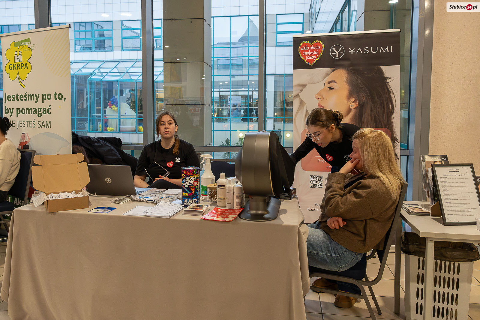 Swoje stoiska przygotowały również służby i instytucje – m.in. Komenda Powiatowa Państwowej Straży Pożarnej w Słubicach, Straż Graniczna oraz Gminna Komisja Rozwiązywania Problemów Alkoholowych. Nie zabrakło też miejsca na wspólne zdjęcie – w holu ustawiono specjalną ściankę z banerem WOŚP i balonami.