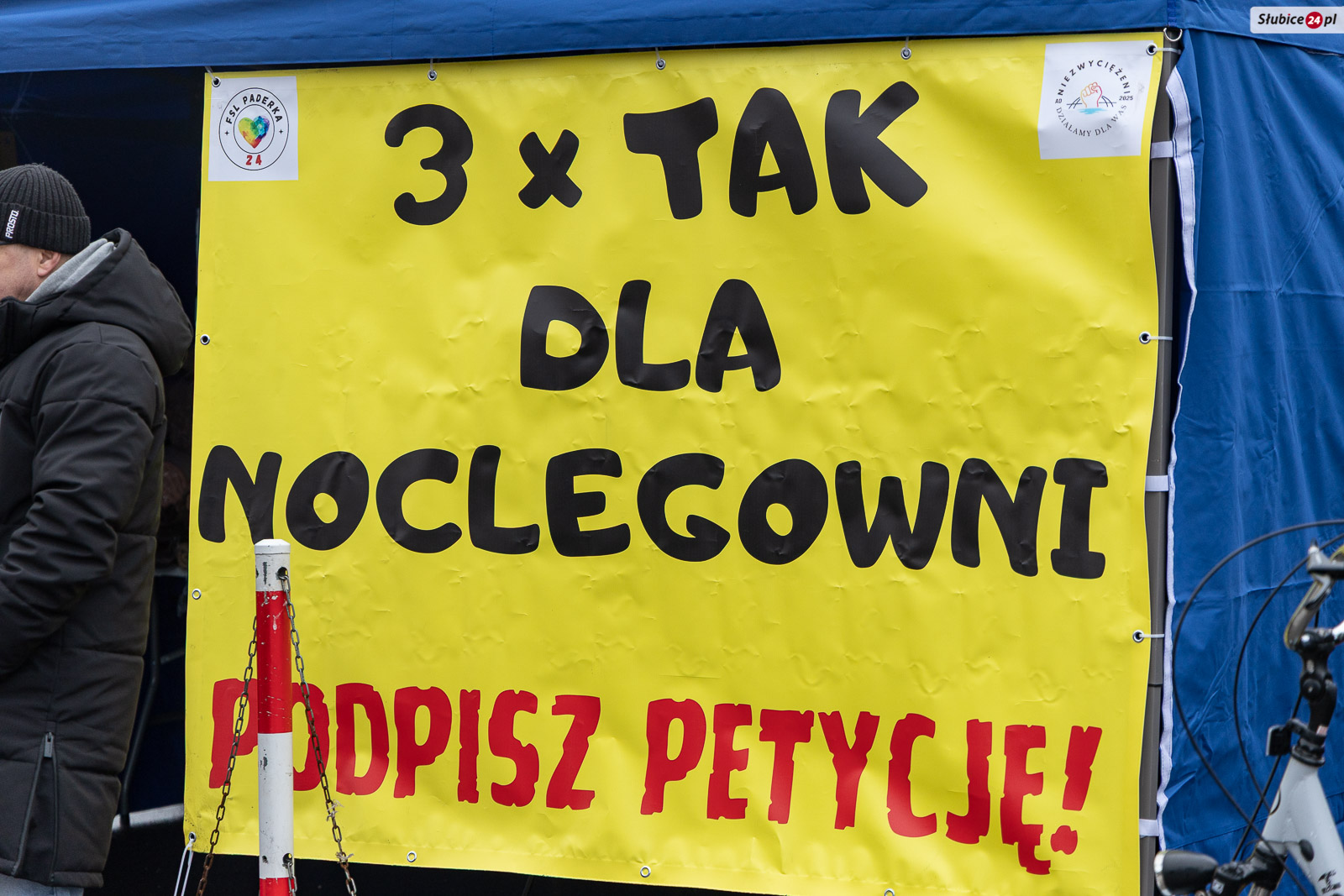 Akcji towarzyszy hasło widniejące na banerach: „TAK dla godności, TAK dla realnej pomocy, TAK dla noclegowni w Słubicach”.