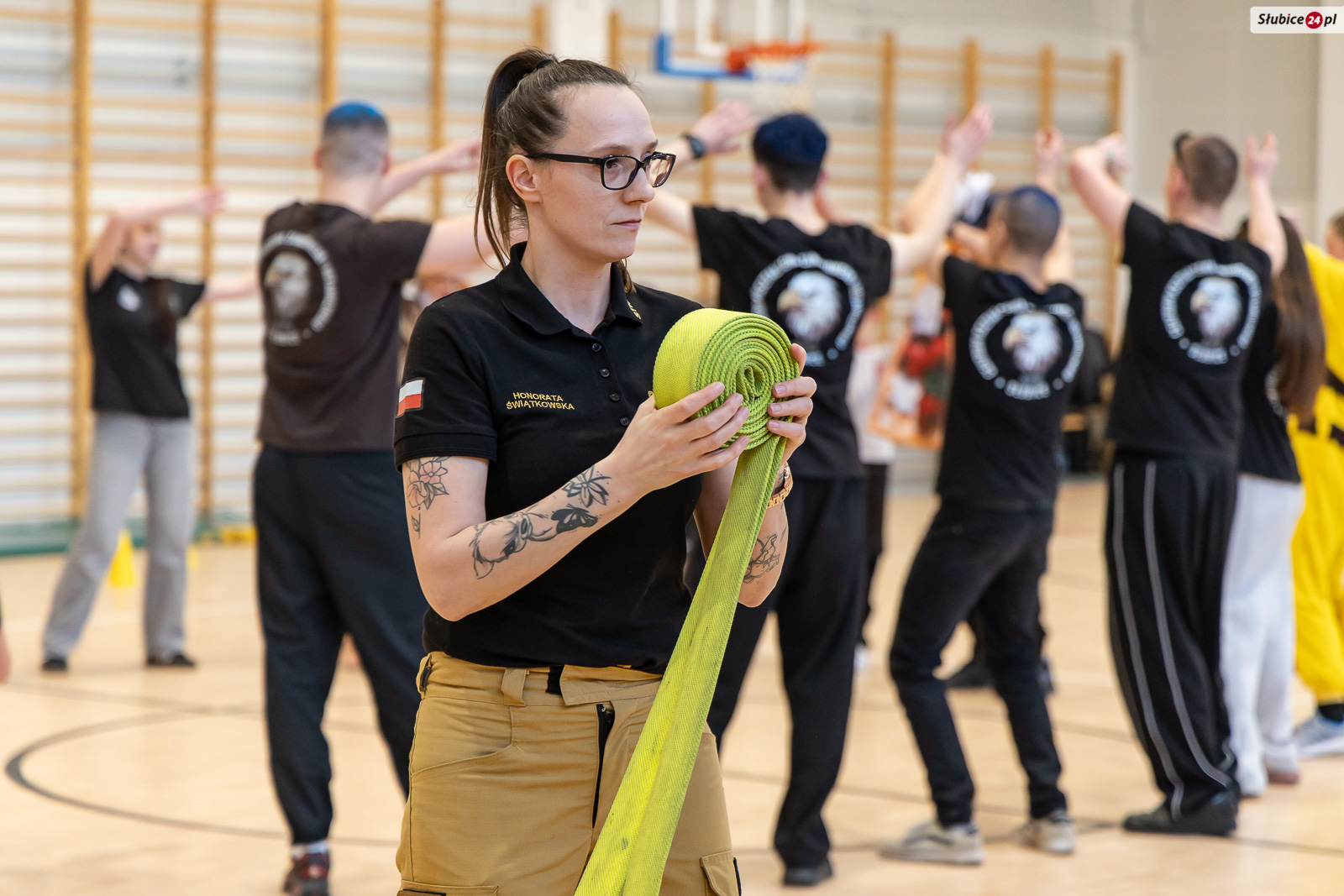 Nie zabrakło również części sprawnościowej. Kadeci z Centrum Kształcenia Zawodowego i Ustawicznego w Słubicach przygotowali tor przeszkód z zadaniami dla najmłodszych – m.in. rzucanie piłką do kręgli, czy slalom z jajkiem na łyżce. Druhowie z Ochotniczej Straży Pożarnej w Słubicach również zaprosili dzieci do wspólnej zabawy i prezentowali zwijanie węża strażackiego.