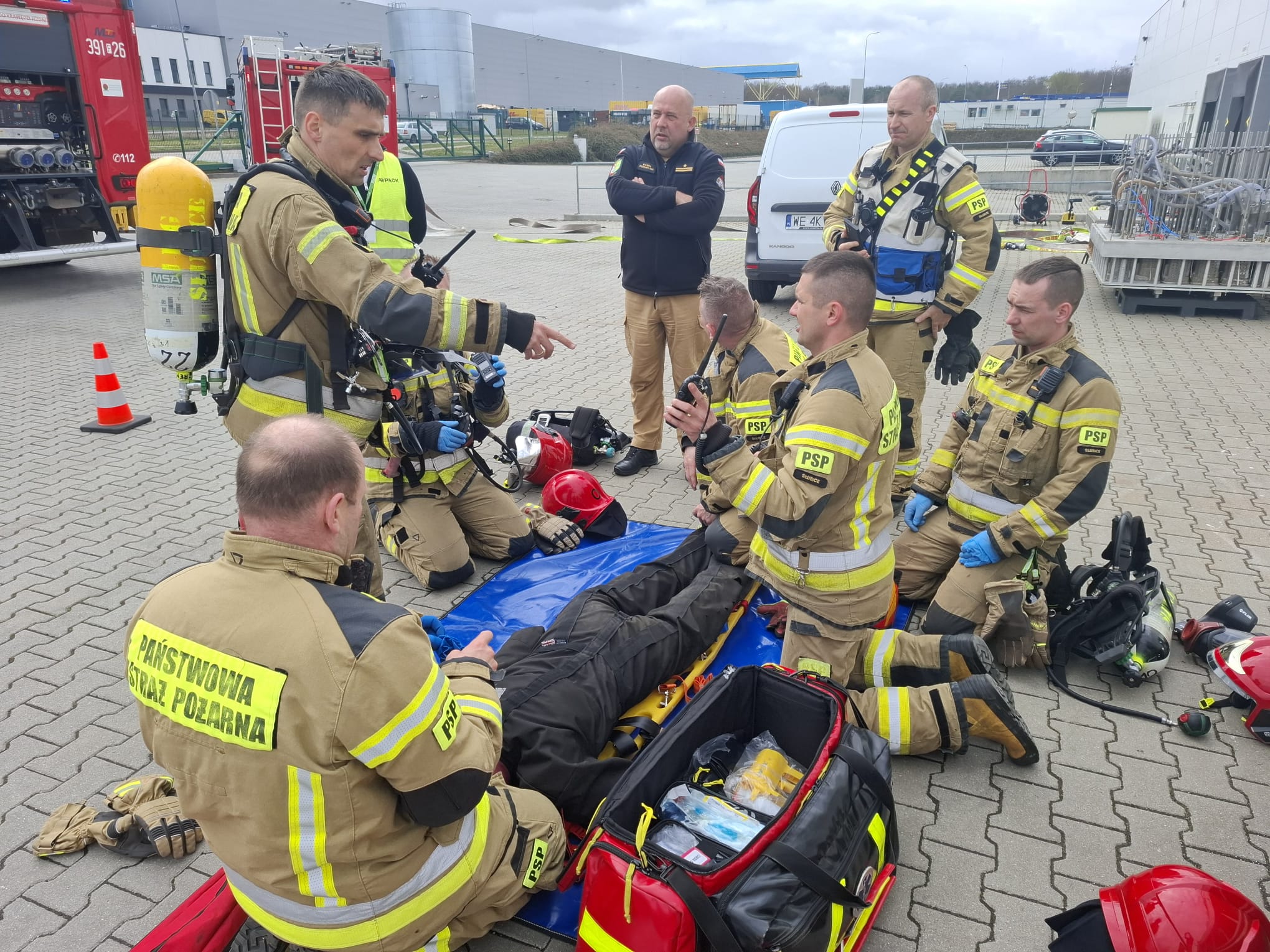 Ale w akcji chodziło nie tylko o ćwiczenia samych strażaków. – Nasze działania były połączone ze sprawdzeniem warunków oraz organizacji ewakuacji pracowników zakładu – przekazał rzecznik PSP Mateusz Maćkowiak.