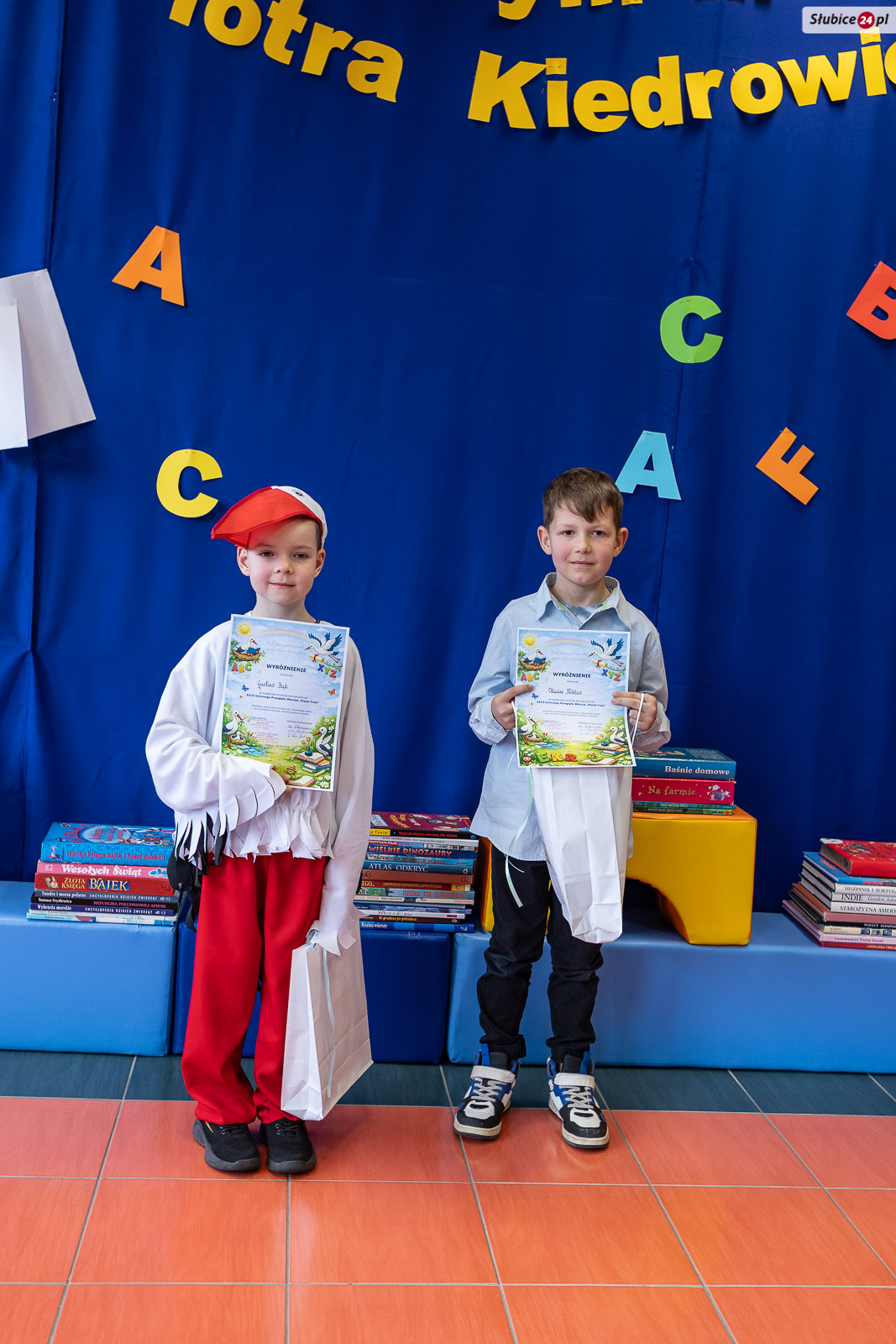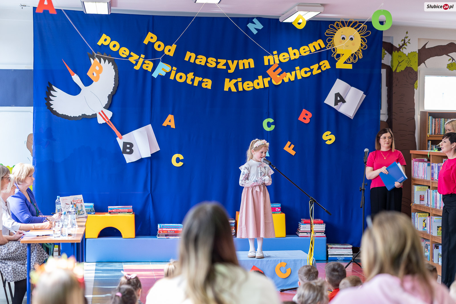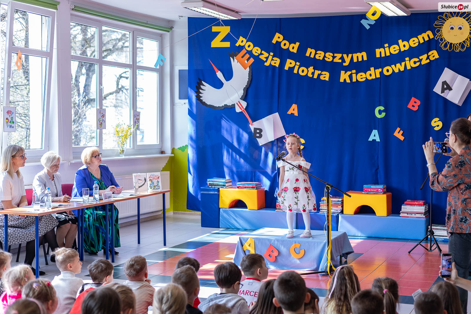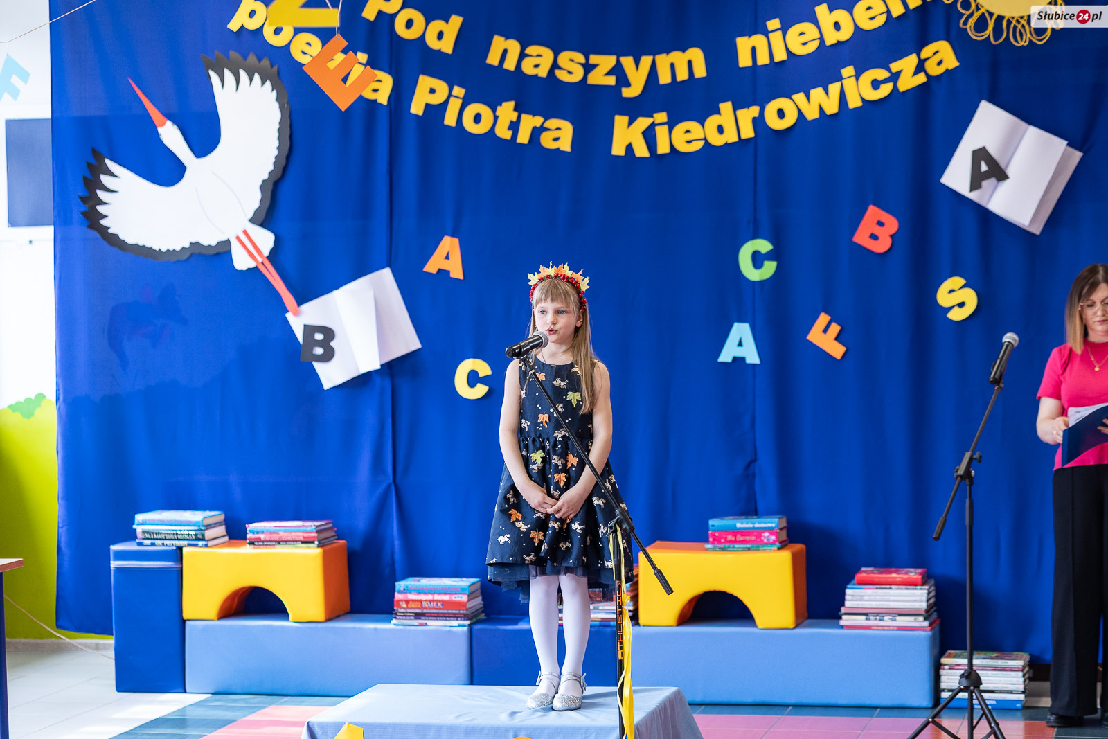 Występom przedszkolaków przysłuchiwała się także burmistrzyni Słubic Marzena Słodownik, która wspólnie z dyrektorką biblioteki Agnieszką Mińską wręczały maluchom nagrody i dyplomy. – Pan Piotr był i sportowcem, i artystą. Cieszę się, że możemy dzisiaj korzystać z jego dorobku – powiedziała burmistrzyni. Na sali był obecny również Marcin Kiedrowicz, syn poety, który przekazał zwyciężczyni nagrodę specjalną – jeden z ostatnich dostępnych egzemplarzy bajki pt. „Abecadło Tymka”.