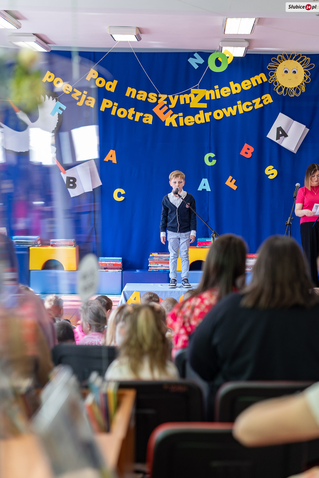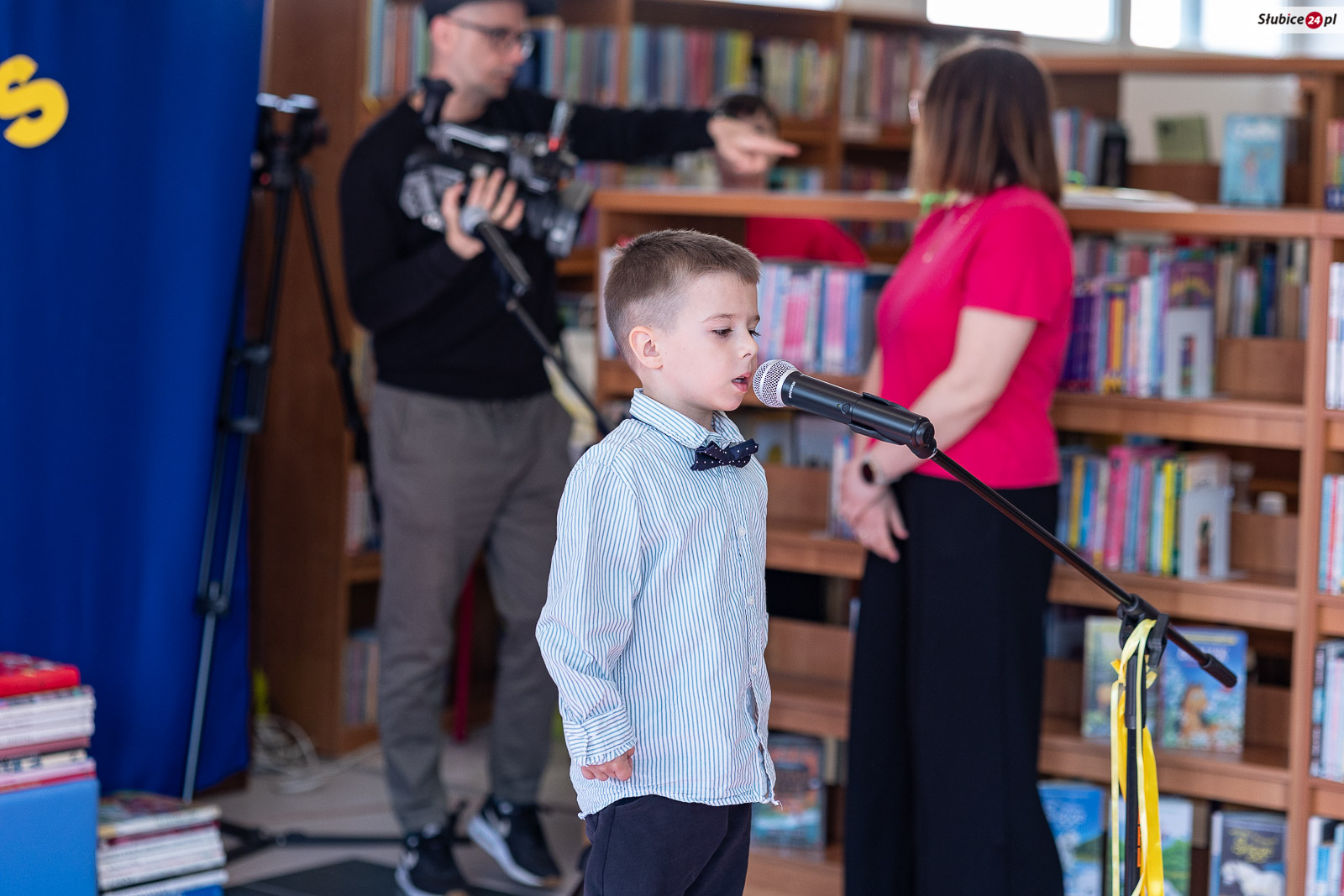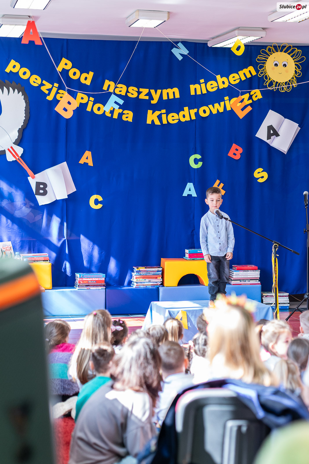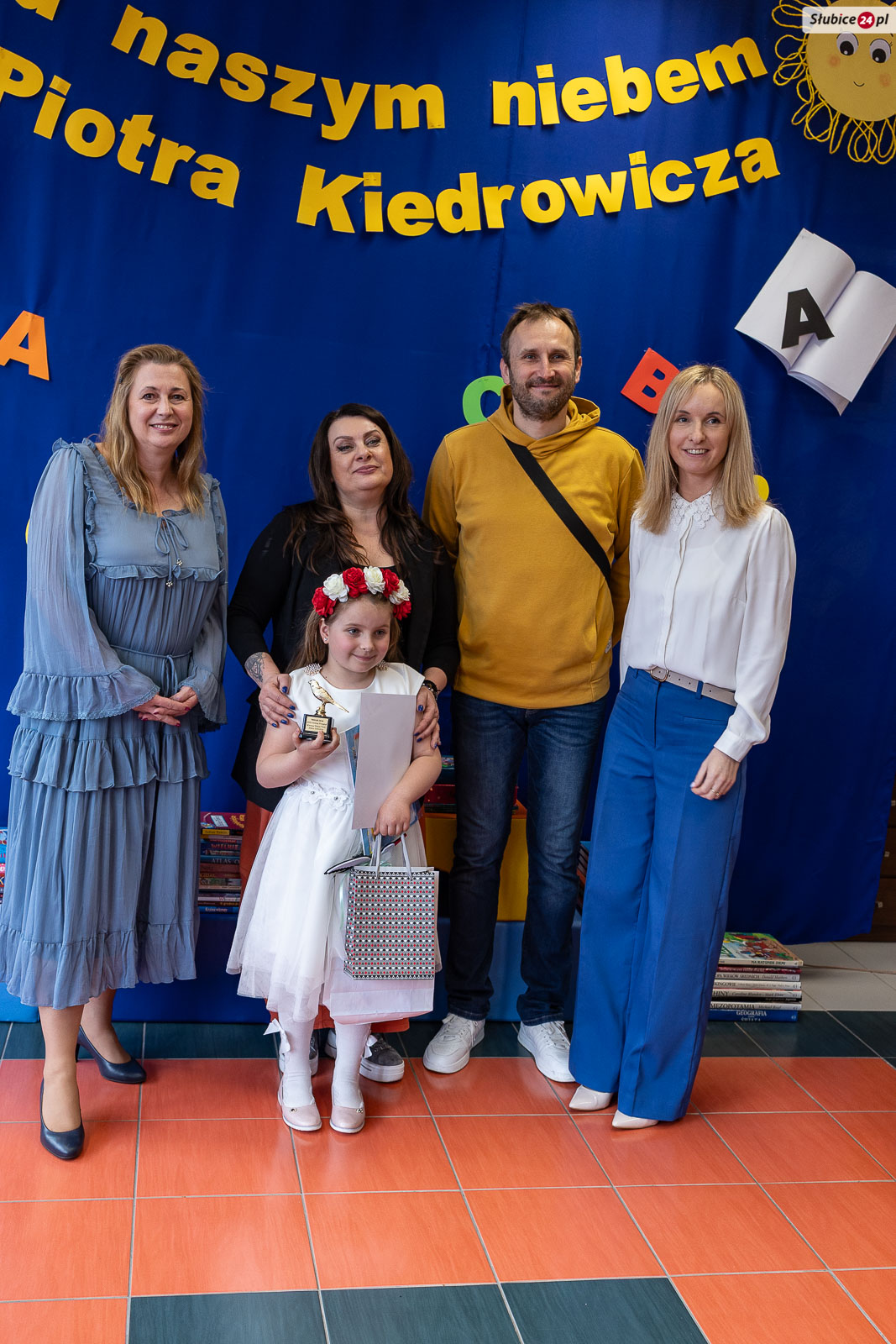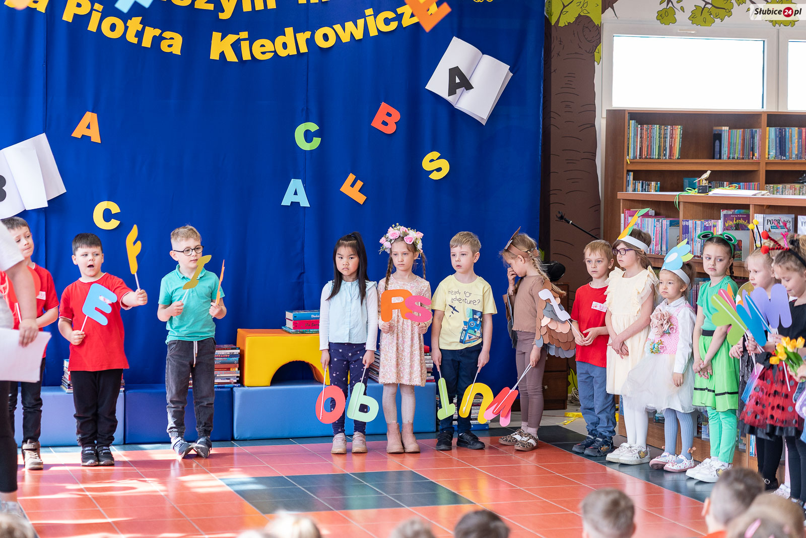 Występom przedszkolaków przysłuchiwała się także burmistrzyni Słubic Marzena Słodownik, która wspólnie z dyrektorką biblioteki Agnieszką Mińską wręczały maluchom nagrody i dyplomy. – Pan Piotr był i sportowcem, i artystą. Cieszę się, że możemy dzisiaj korzystać z jego dorobku – powiedziała burmistrzyni. Na sali był obecny również Marcin Kiedrowicz, syn poety, który przekazał zwyciężczyni nagrodę specjalną – jeden z ostatnich dostępnych egzemplarzy bajki pt. „Abecadło Tymka”.