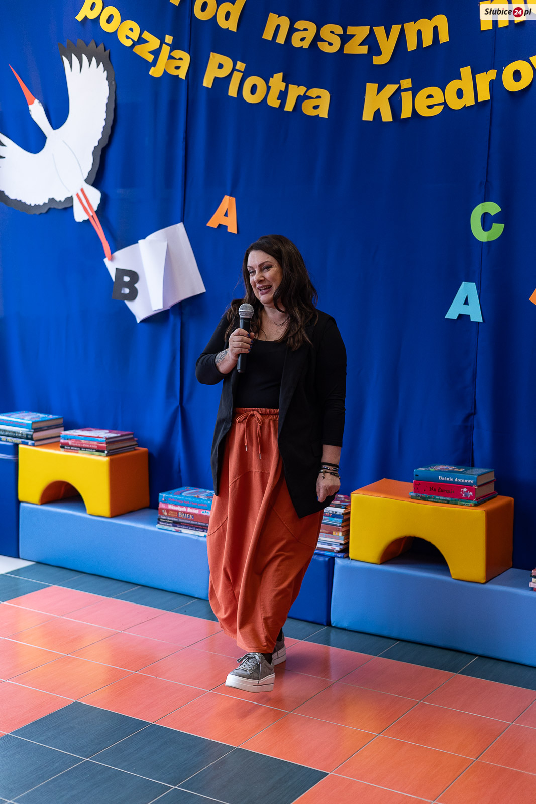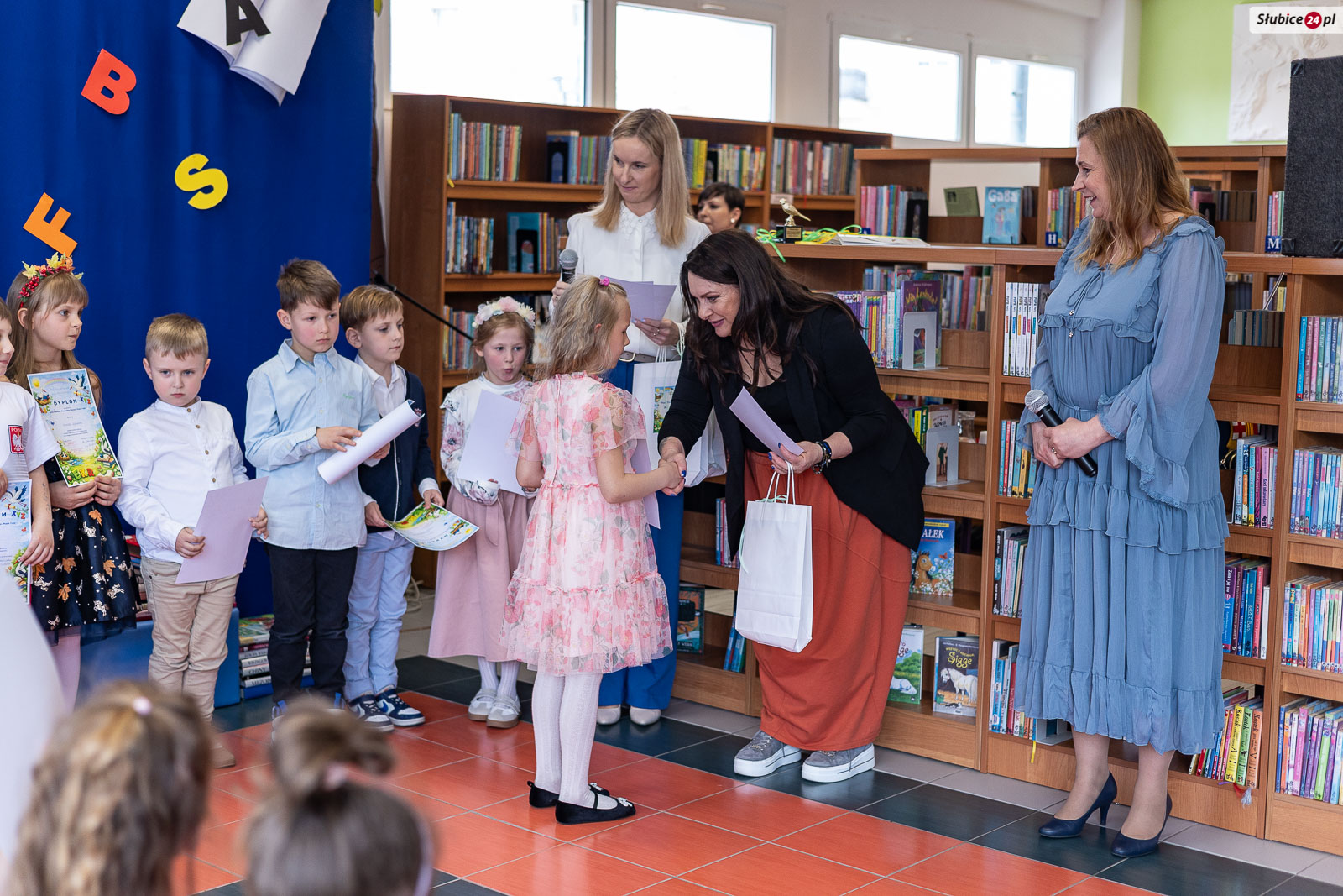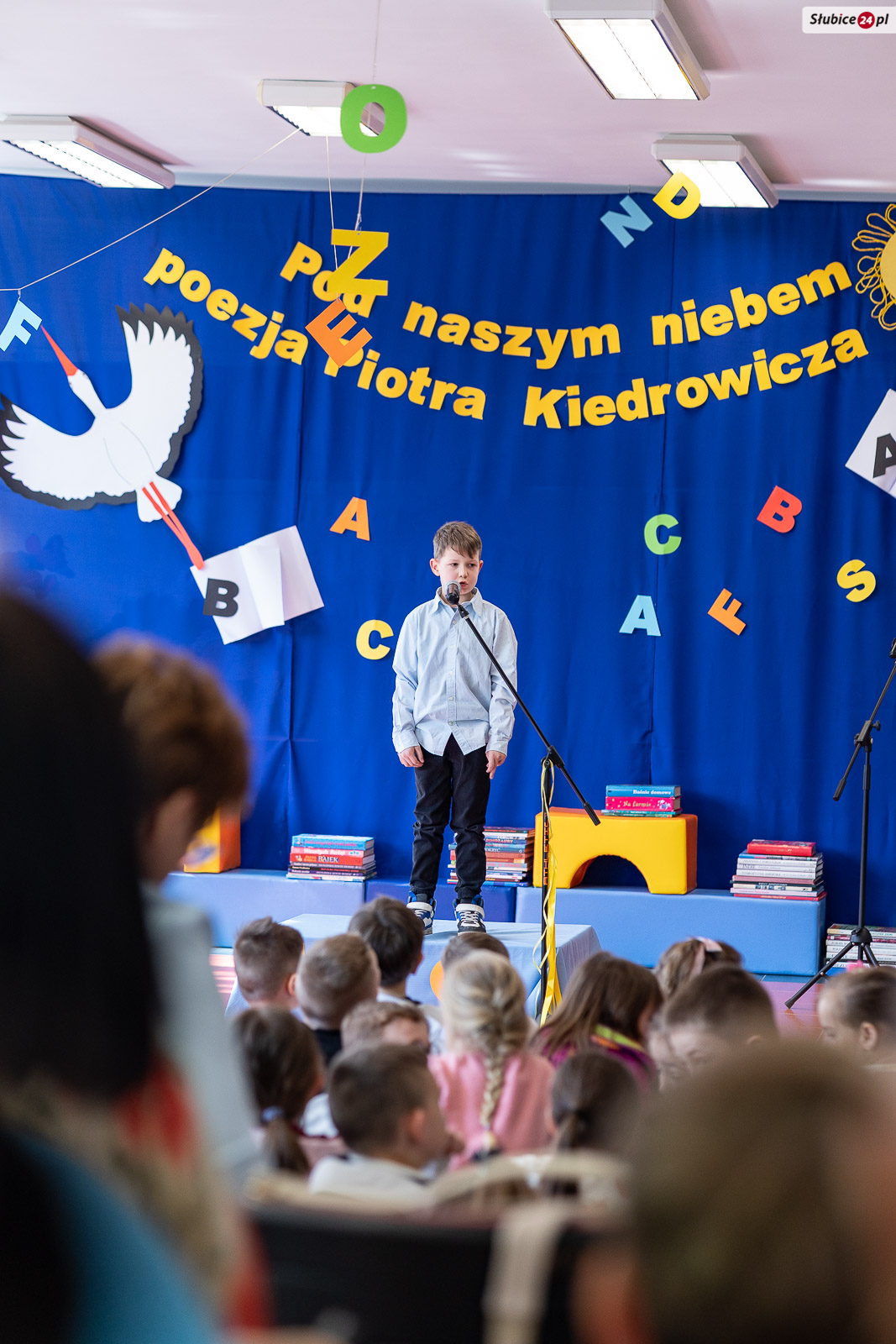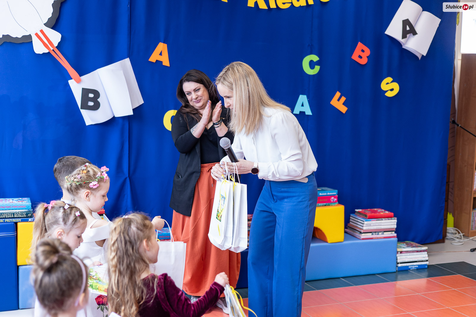 Występom przedszkolaków przysłuchiwała się także burmistrzyni Słubic Marzena Słodownik, która wspólnie z dyrektorką biblioteki Agnieszką Mińską wręczały maluchom nagrody i dyplomy. – Pan Piotr był i sportowcem, i artystą. Cieszę się, że możemy dzisiaj korzystać z jego dorobku – powiedziała burmistrzyni. Na sali był obecny również Marcin Kiedrowicz, syn poety, który przekazał zwyciężczyni nagrodę specjalną – jeden z ostatnich dostępnych egzemplarzy bajki pt. „Abecadło Tymka”.
