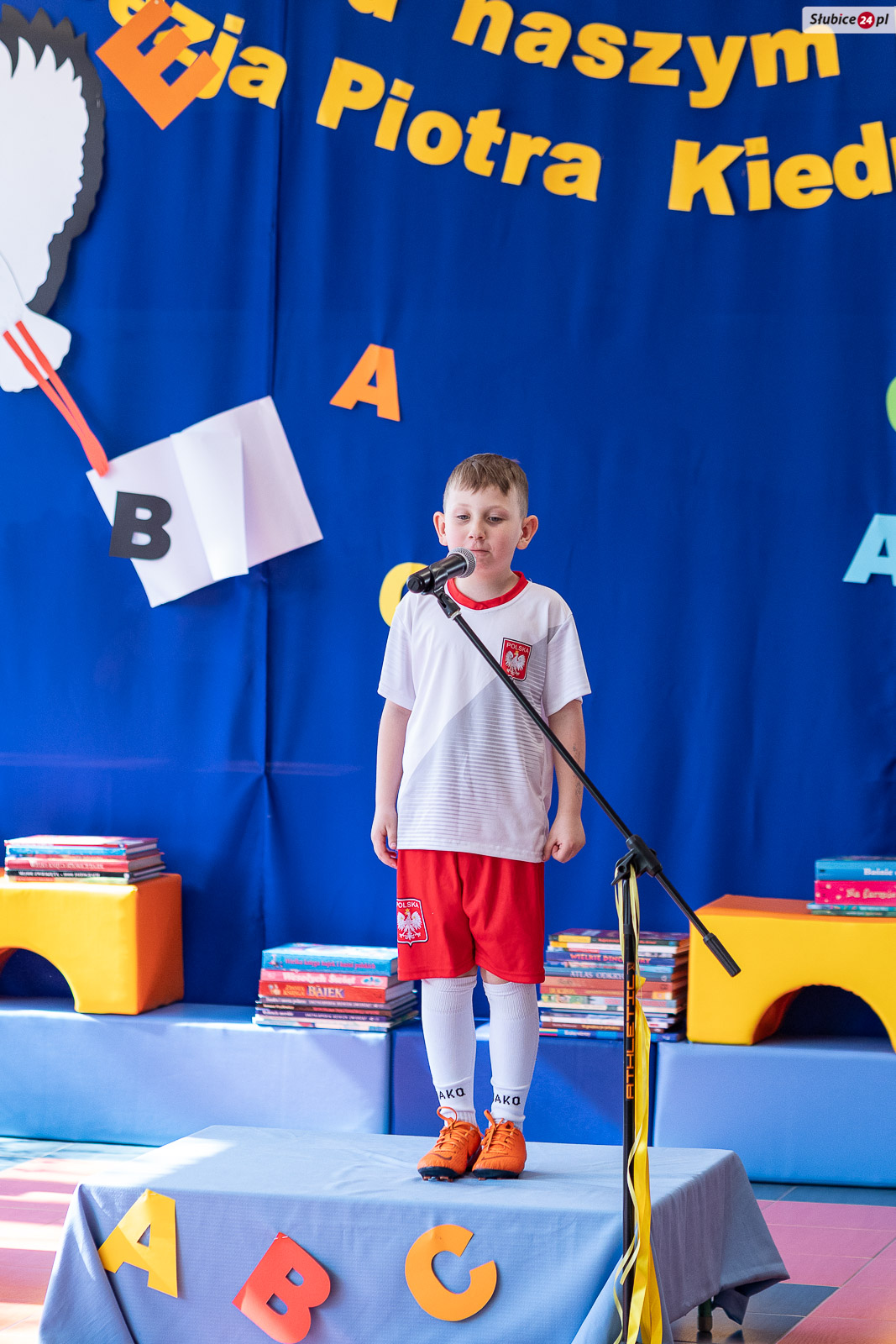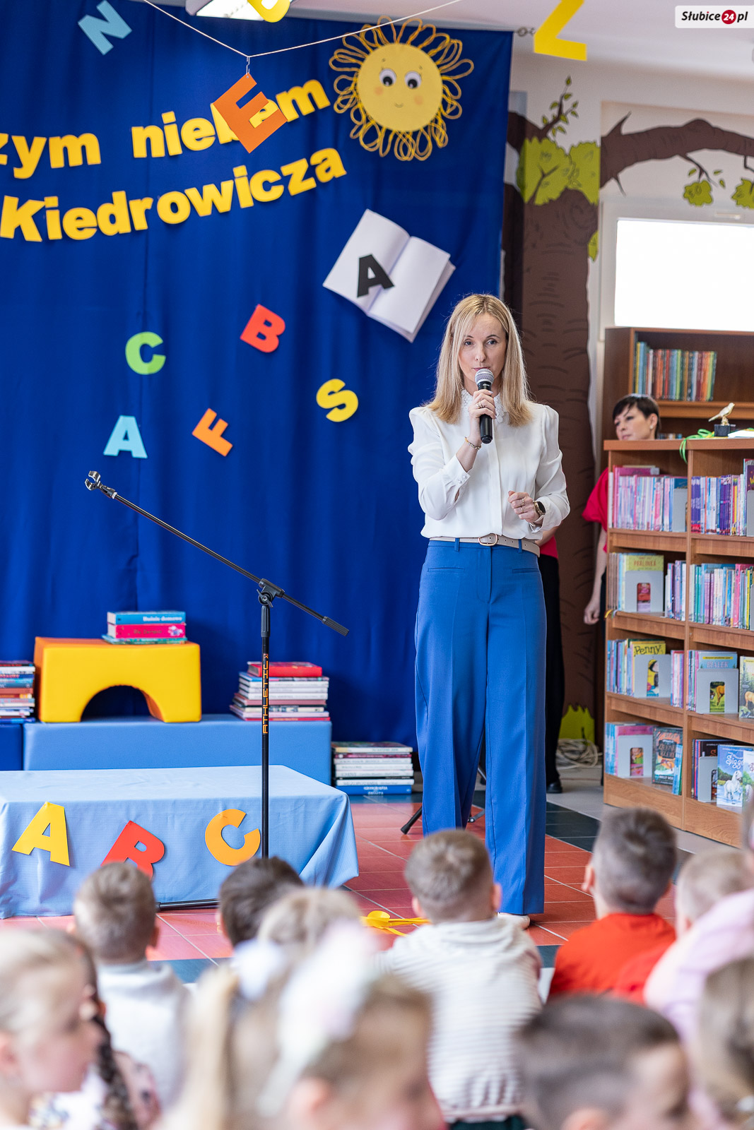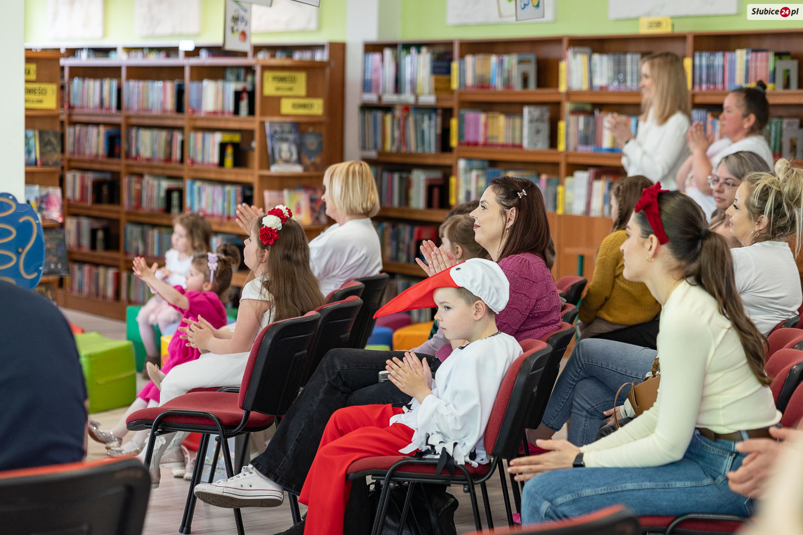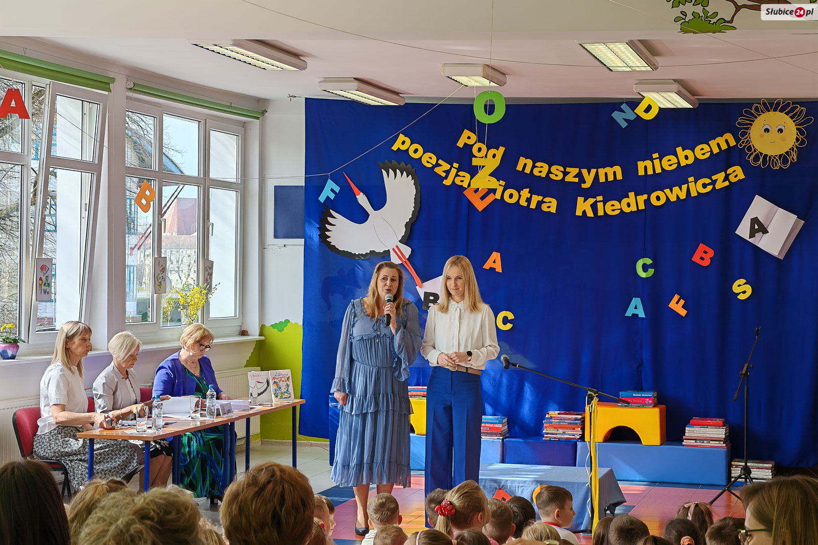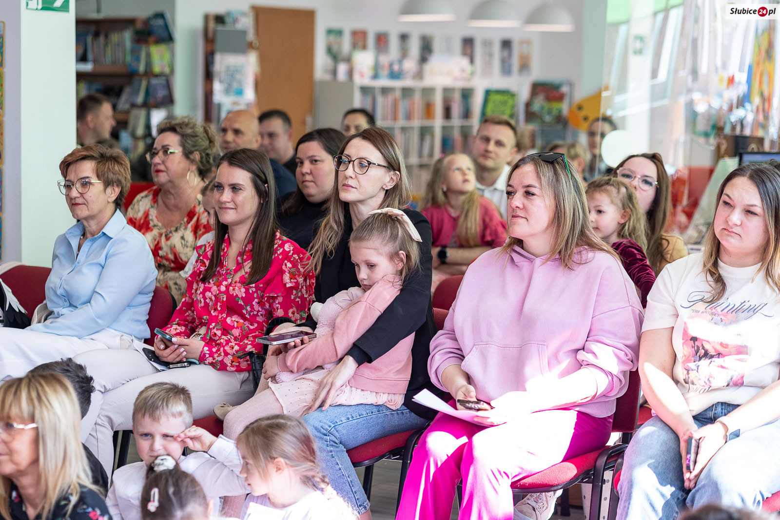 Występom przedszkolaków przysłuchiwała się także burmistrzyni Słubic Marzena Słodownik, która wspólnie z dyrektorką biblioteki Agnieszką Mińską wręczały maluchom nagrody i dyplomy. – Pan Piotr był i sportowcem, i artystą. Cieszę się, że możemy dzisiaj korzystać z jego dorobku – powiedziała burmistrzyni. Na sali był obecny również Marcin Kiedrowicz, syn poety, który przekazał zwyciężczyni nagrodę specjalną – jeden z ostatnich dostępnych egzemplarzy bajki pt. „Abecadło Tymka”.