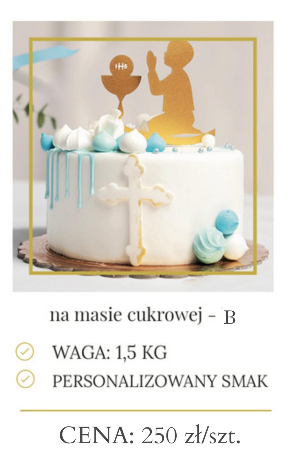 Do wyboru są różne rodzaje tortów – na masie cukrowej lub na bitej śmietanie, z możliwością personalizowania smaku i dowolnym nadrukiem. Można też wybrać kolor biszkoptu – jasny lub ciemny.