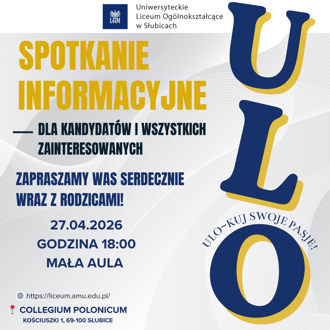 Uniwersyteckie Liceum Ogólnokształcące zaprasza na otwarte spotkanie informacyjne dla kandydatów oraz wszystkich zainteresowanych.