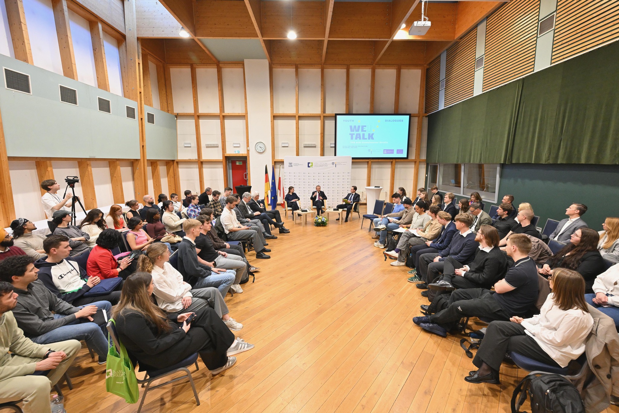 W Collegium Polonicum komisarz wziął udział w inicjatywie „Youth Policy Dialogue”. Studenci Uniwersytetu im. Adama Mickiewicza oraz Uniwersytetu Europejskiego Viadrina debatowali z gościem o budżecie UE, bezpieczeństwie oraz roli młodego pokolenia w integracji europejskiej. Piotr Serafin podkreślił, że Słubice i tutejsza uczelnia są doskonałym przykładem praktycznego funkcjonowania idei wspólnej Europy.