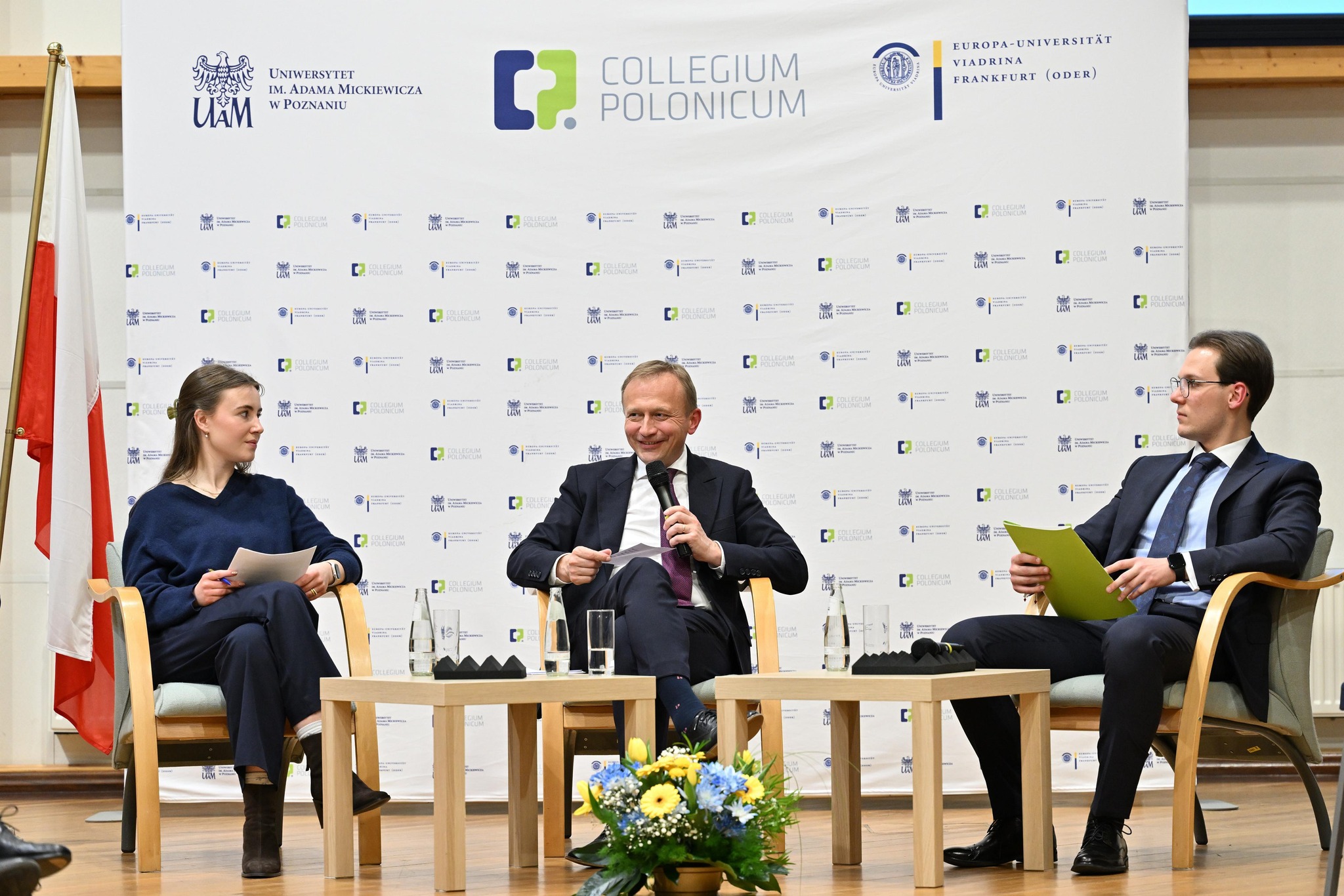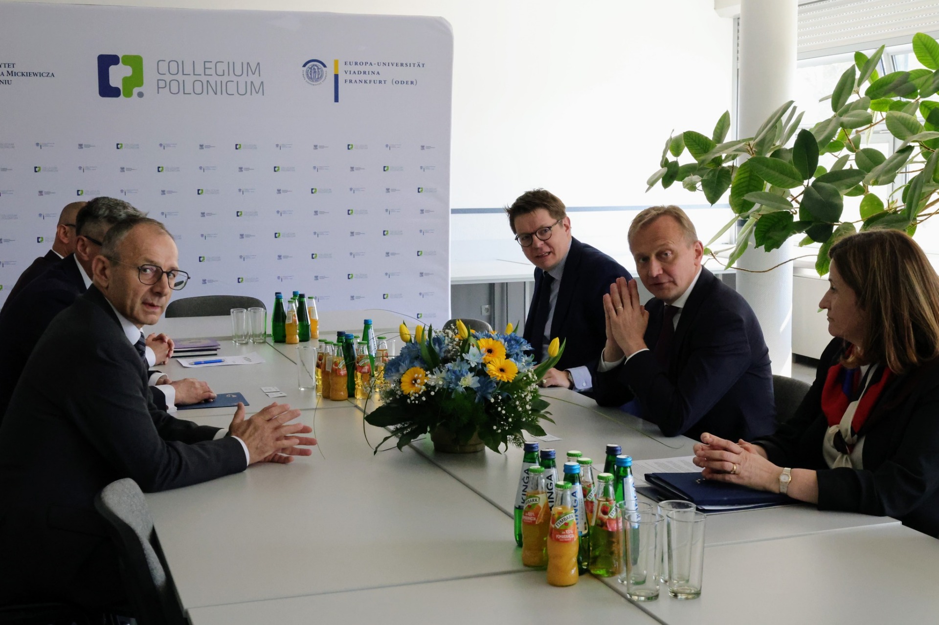 Wizyta rozpoczęła się w murach Collegium Polonicum. W spotkaniu z komisarzem uczestniczyli m.in. wojewoda lubuski Marek Cebula oraz marszałek województwa lubuskiego Sebastian Ciemnoczołowski. Wydarzenie miało wymiar szczególny – Piotr Serafin pochodzi z pobliskiego Sulęcina, a 30 lat temu współtworzył Euroregion Pro Europa Viadrina.