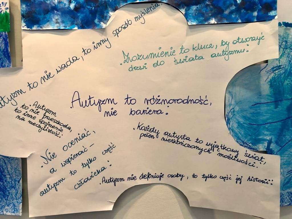 Na czym polegała akcja? Każda placówka otrzymała symboliczny biały puzzel – międzynarodowy znak świadomości autyzmu. Dzieci, nauczyciele i opiekunowie wspólnie udekorowali swoje puzzle, używając kolorów, wzorów i słów związanych z akceptacją, zrozumieniem i różnorodnością. W wielu miejscach dzieci tworzyły także krótkie hasła promujące otwartość i szacunek wobec osób ze spektrum autyzmu.