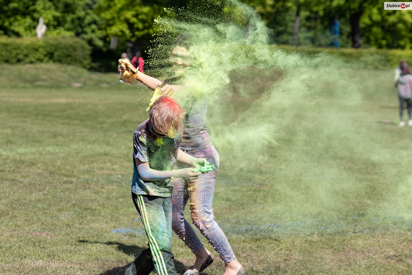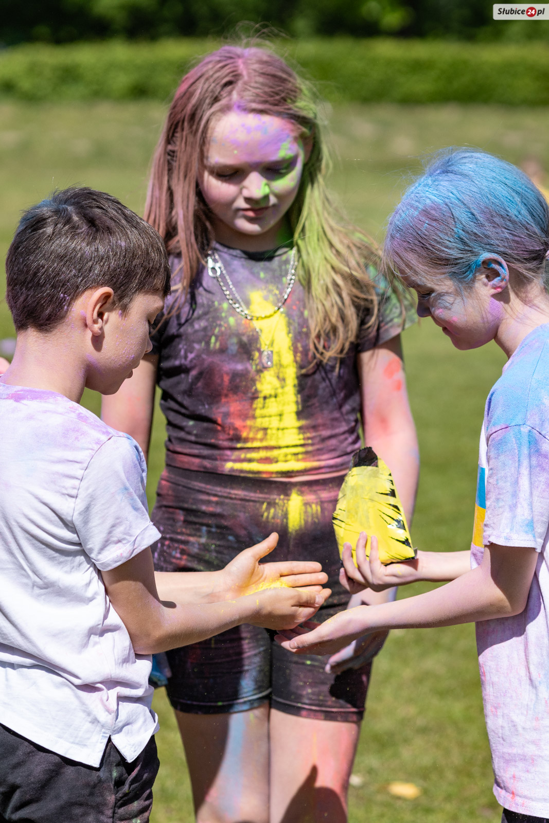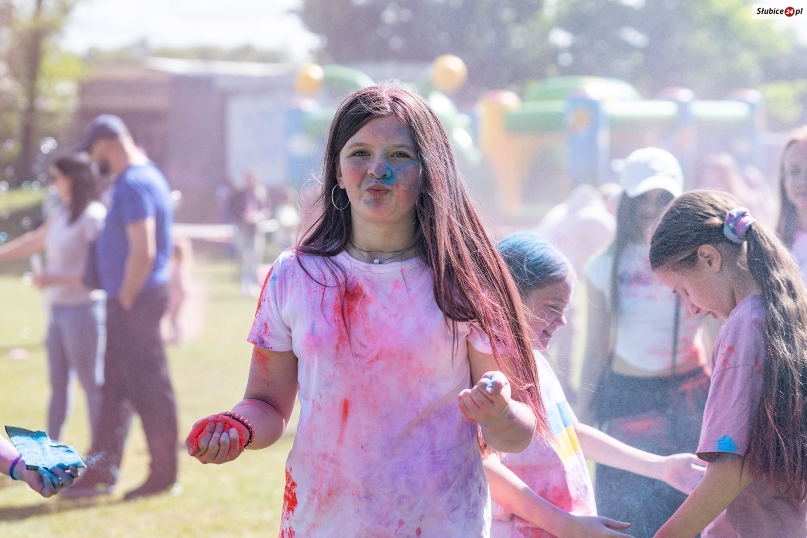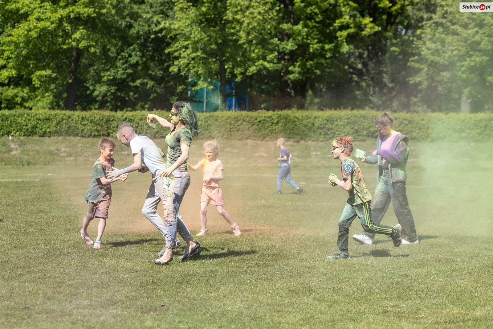 Kolorowe proszki w powietrzu, muzyka z głośników i wspólna zabawa na trawie – tak wyglądało Holi Święto Kolorów, które odbyło się 11 maja na boisku bocznym Słubickiego Ośrodka Sportu i Rekreacji w Słubicach.