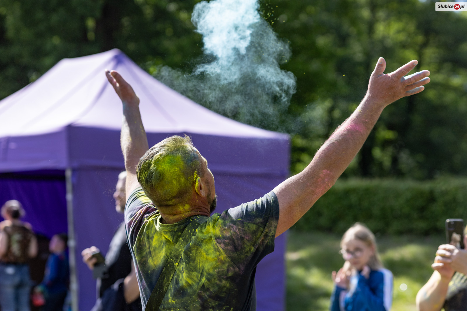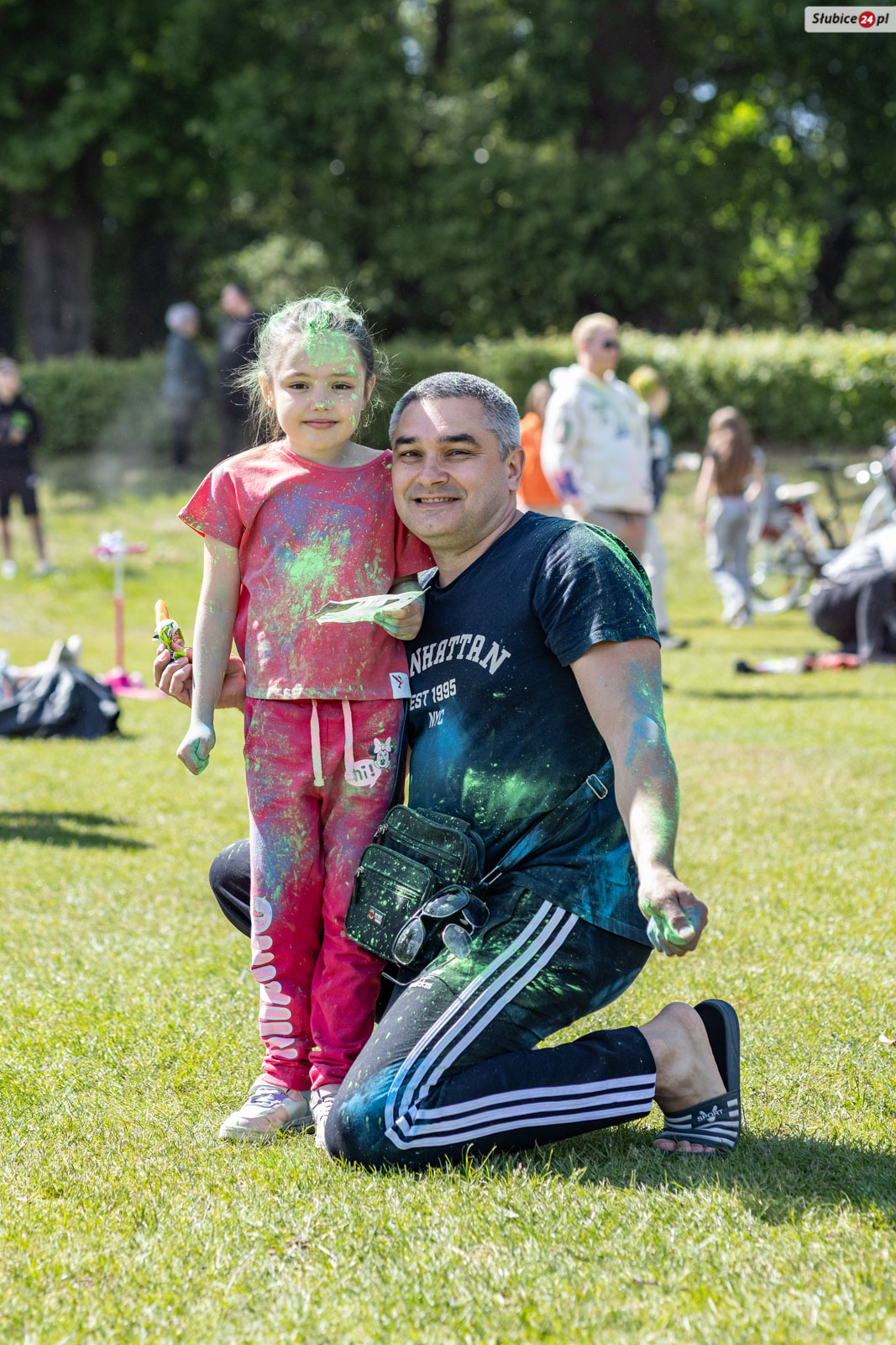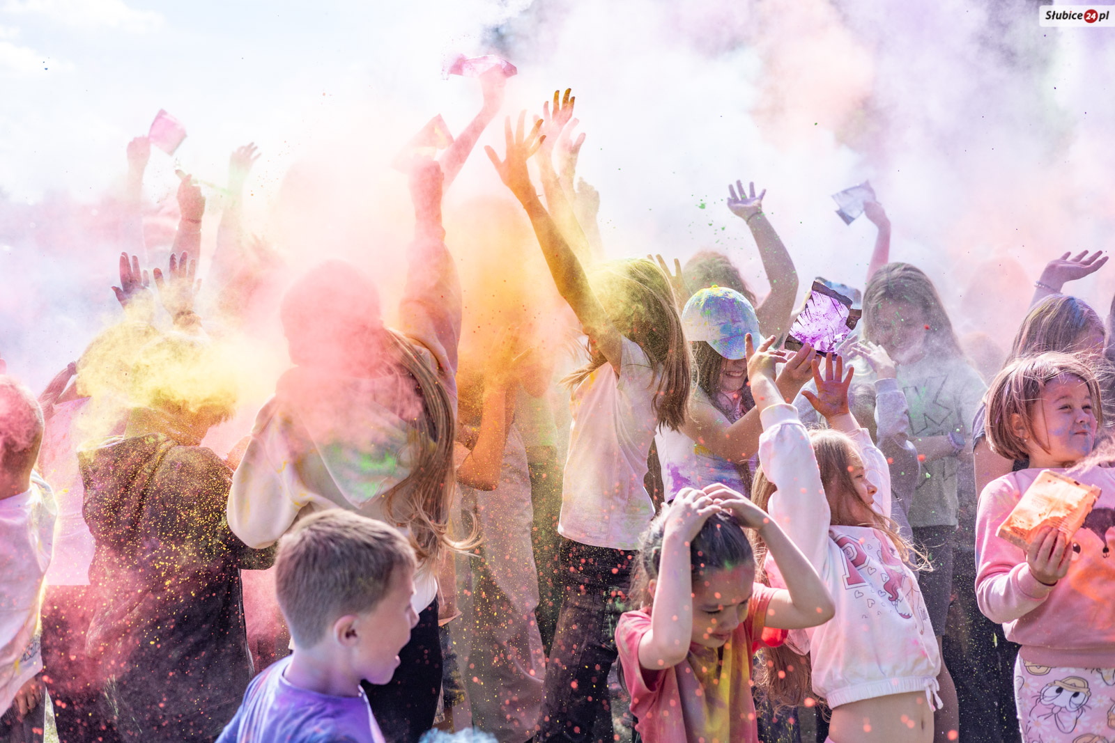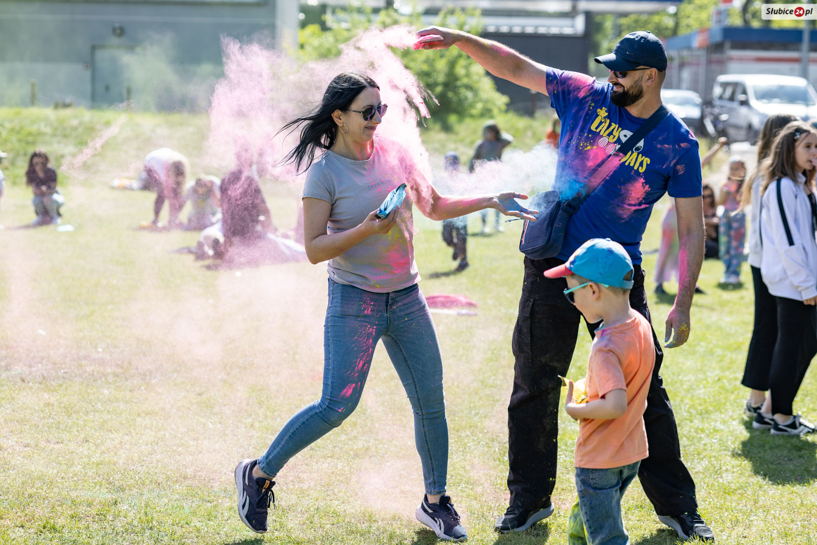 Kolorowe proszki w powietrzu, muzyka z głośników i wspólna zabawa na trawie – tak wyglądało Holi Święto Kolorów, które odbyło się 11 maja na boisku bocznym Słubickiego Ośrodka Sportu i Rekreacji w Słubicach.
