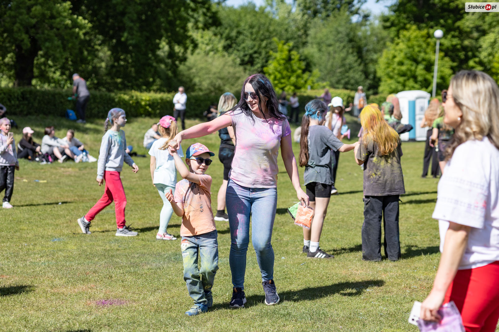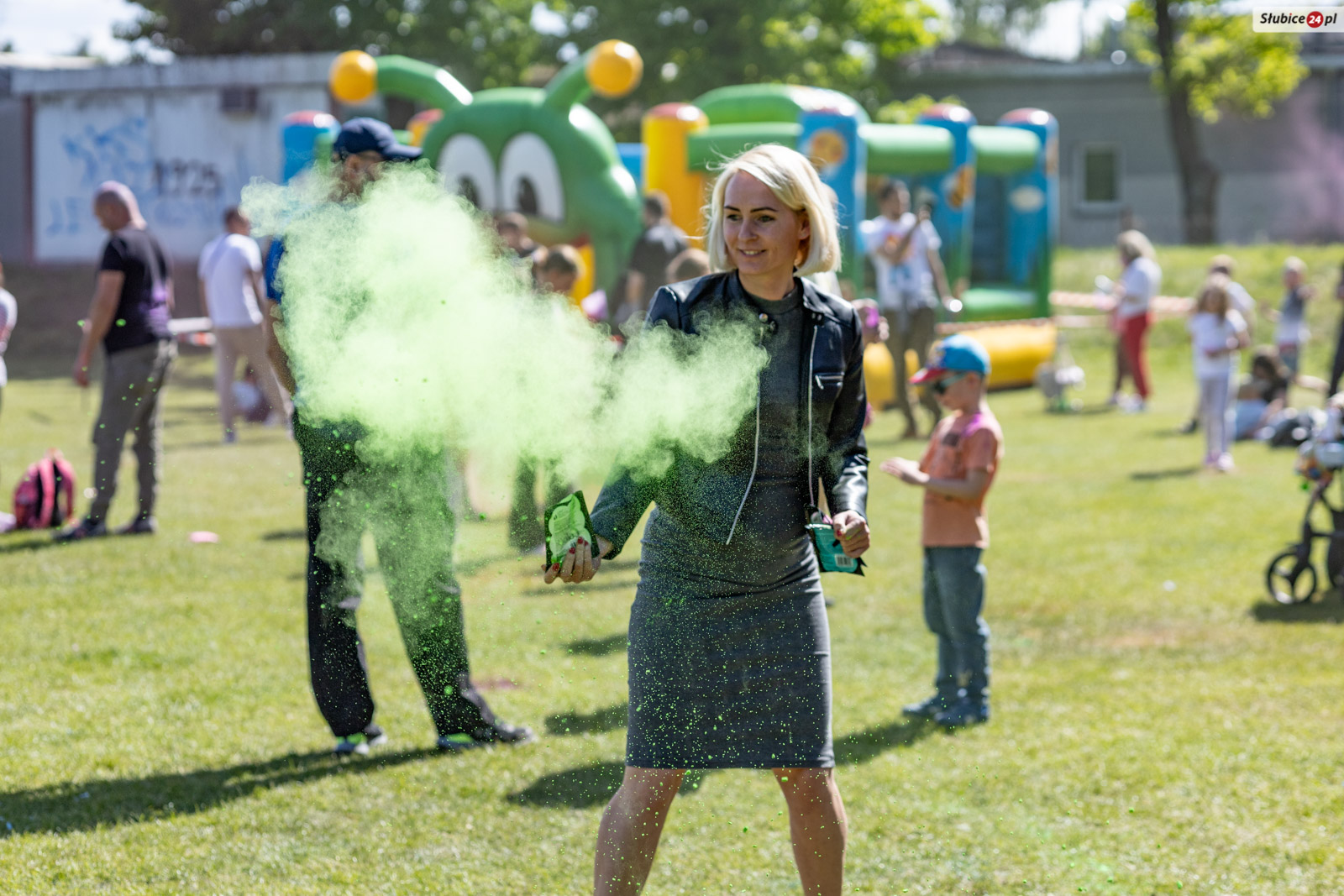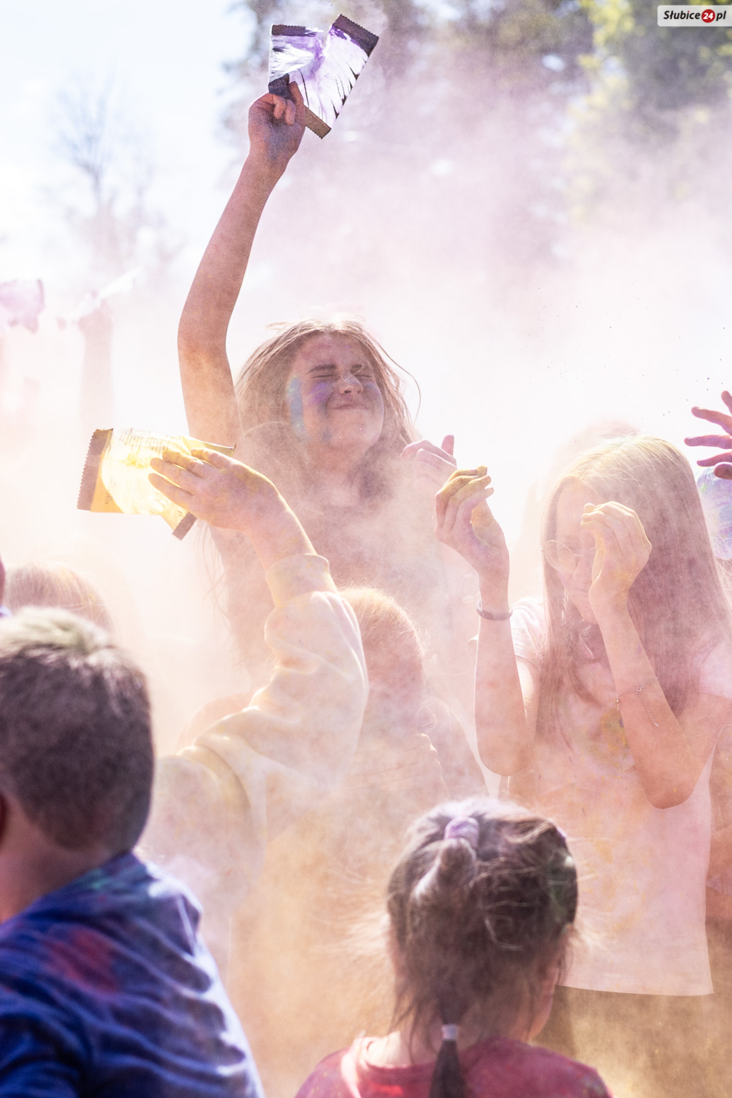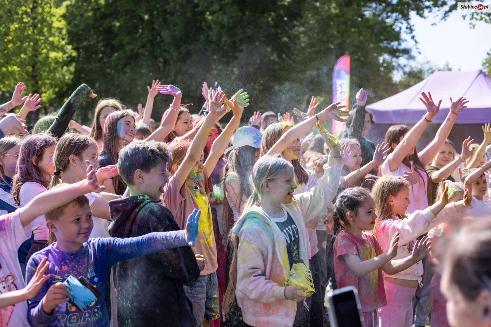 Kolorowe proszki w powietrzu, muzyka z głośników i wspólna zabawa na trawie – tak wyglądało Holi Święto Kolorów, które odbyło się 11 maja na boisku bocznym Słubickiego Ośrodka Sportu i Rekreacji w Słubicach.