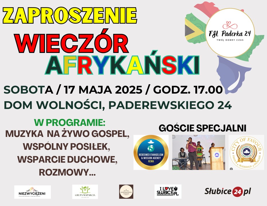 Jak zapowiadają organizatorzy, w programie najbliższego spotkania znajdą się m.in. muzyka gospel na żywo, jedzenie i wspólne rozmowy. Dodatkowo na miejscu pojawią się goście z Wrocławia: przedstawiciele Domu Odkupienia, Fundacji REMA i wspólnoty RCCG Wrocław. Początek wydarzenia zaplanowano na godzinę 17:00 przy ul. Paderewskiego 24 w Słubicach.
