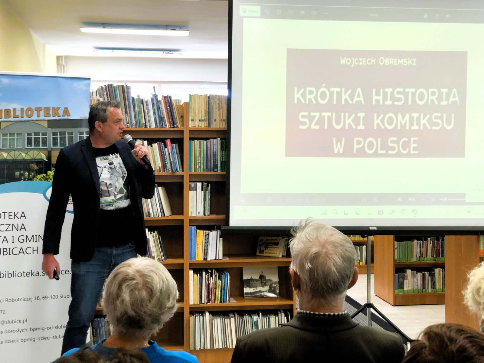Jednym z wydarzeń było spotkanie autorskie z Wojciechem Obremskim (ZOBACZ) połączone z wystawą komiksów, którą jeszcze do końca maja można oglądać w słubickiej bibliotece. Do końca maja trwa również miesiąc przebaczenia, w ramach którego można oddać książki bez kar. Więcej o amnestii w bibliotece pisaliśmy TUTAJ.