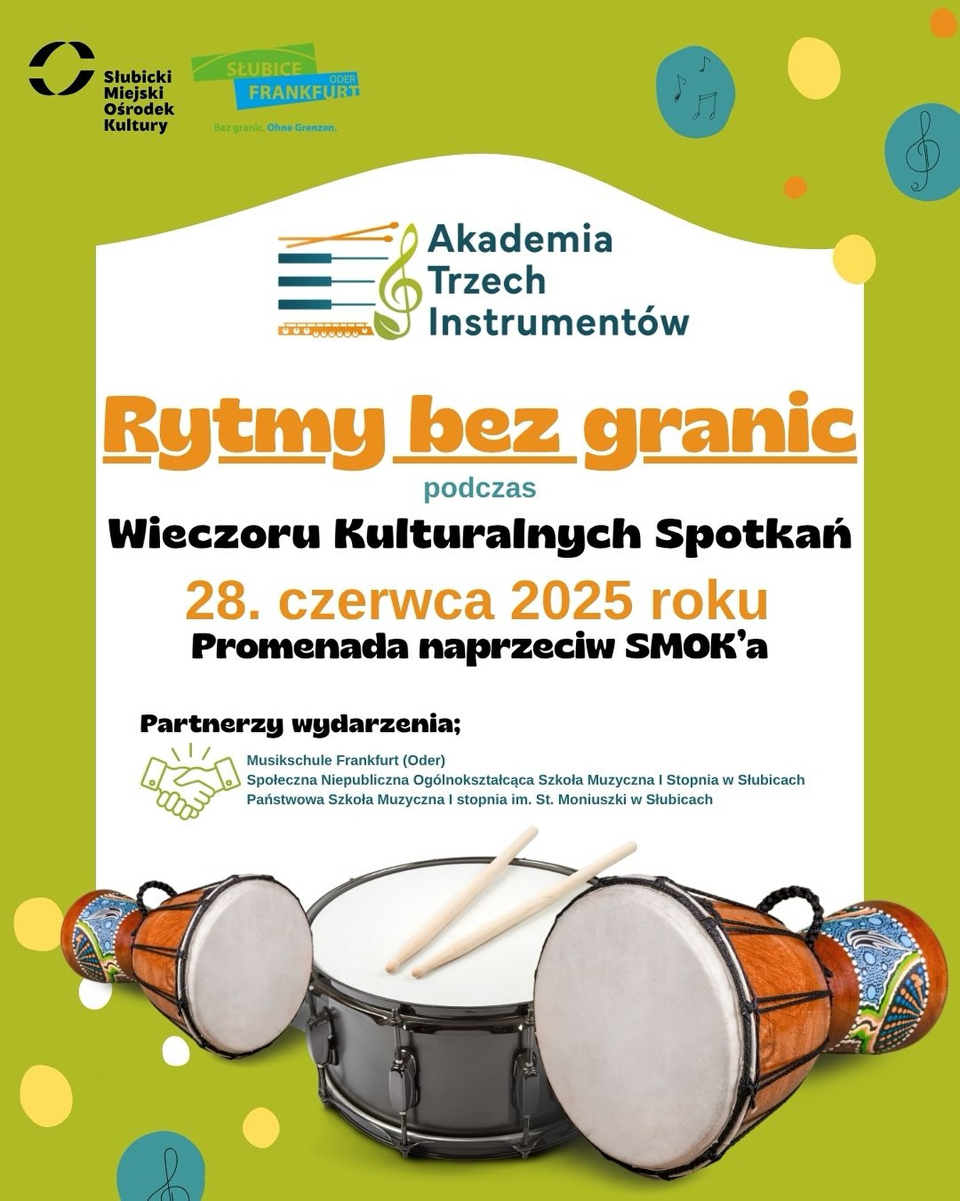 Na plenerowej scenie zaprezentują się uczniowie szkół muzycznych z obu stron Odry: Musikschule Frankfurt (Oder), Państwowej Szkoły Muzycznej I st. w Słubicach oraz Społecznej Niepublicznej Ogólnokształcącej Szkoły Muzycznej I st. w Słubicach.